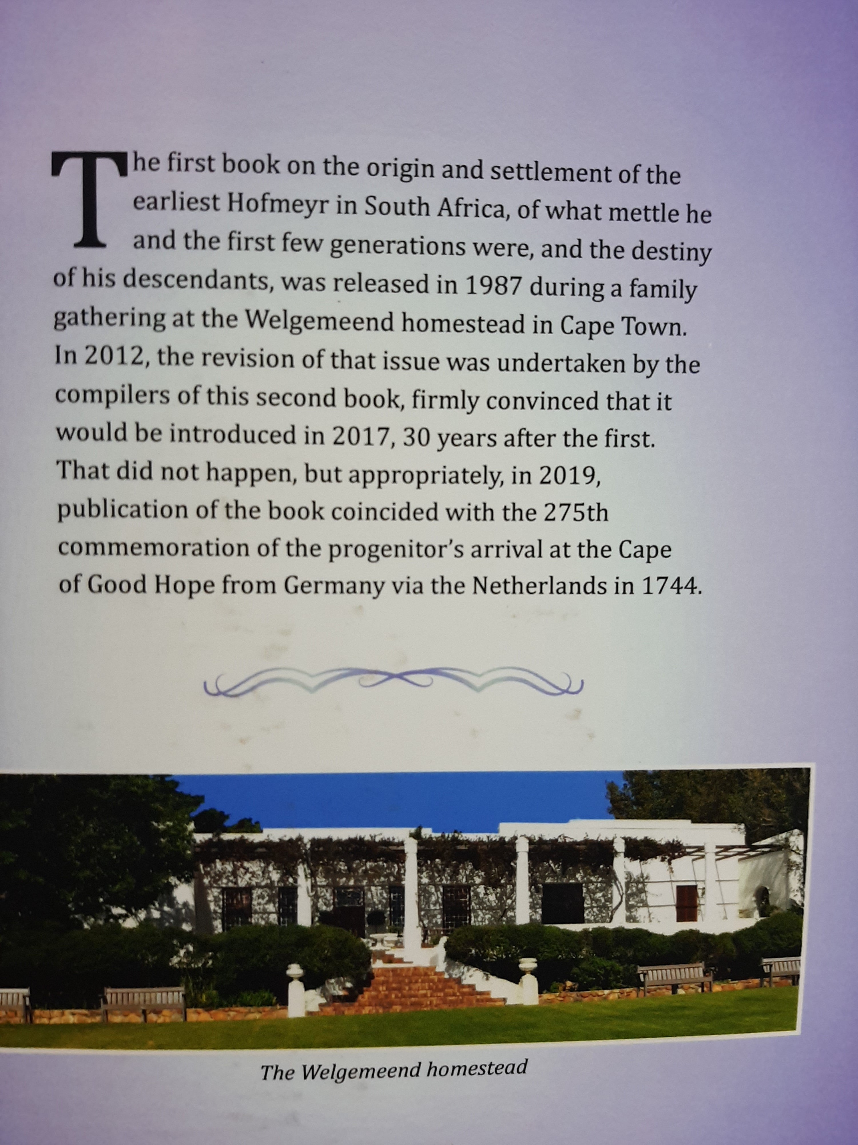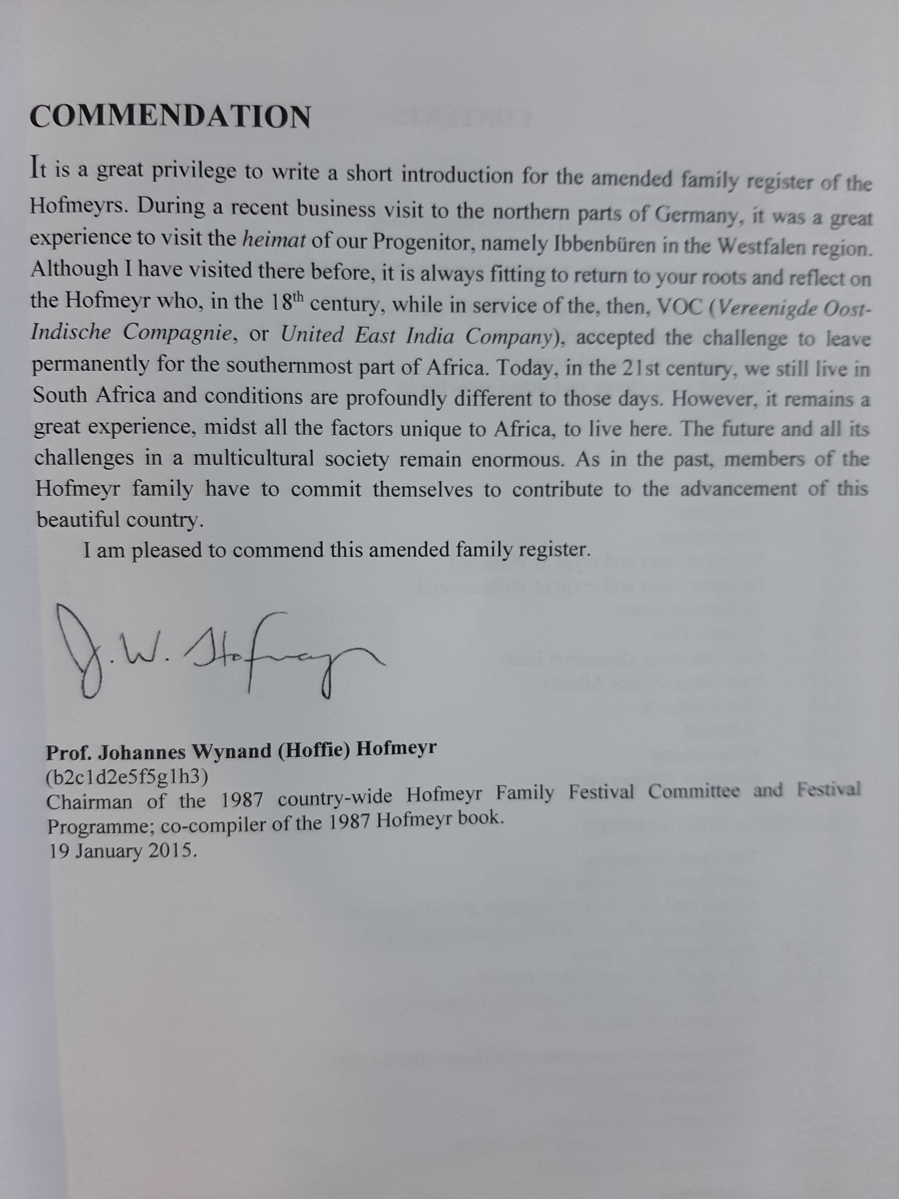 Originally Compiled in 1987 by: Wynand Louw Hofmeyr, Sarah Mariena Hofmeyr, George Sebastiaan Hofmeyr,Johannes Wynand Hofmeyr and Nico Jan Hofmeyr.