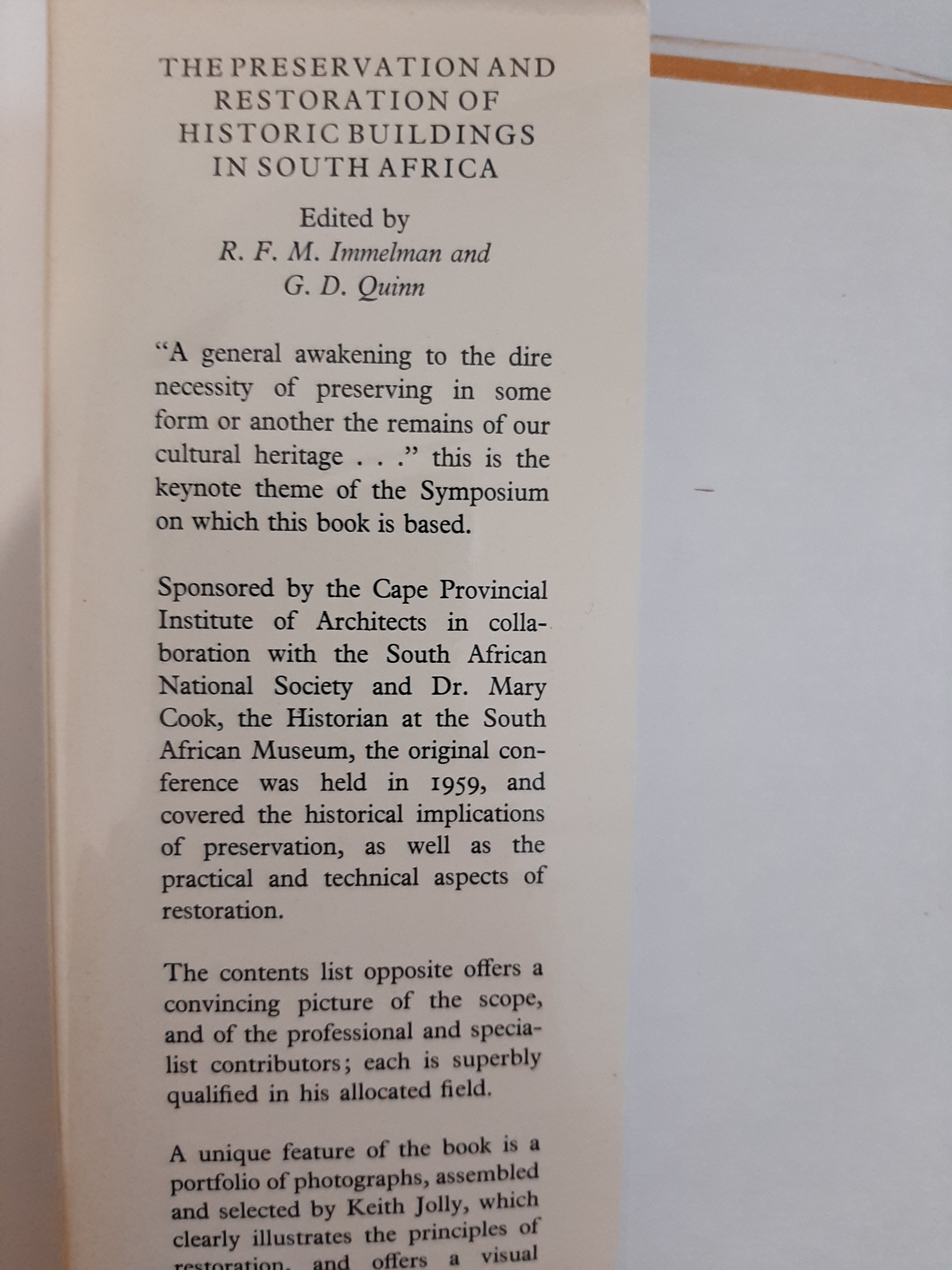 The Preservation & Restoration of Historic Buildings in South Africa by Immelman (R.F.M.) & Quinn (G.D.)