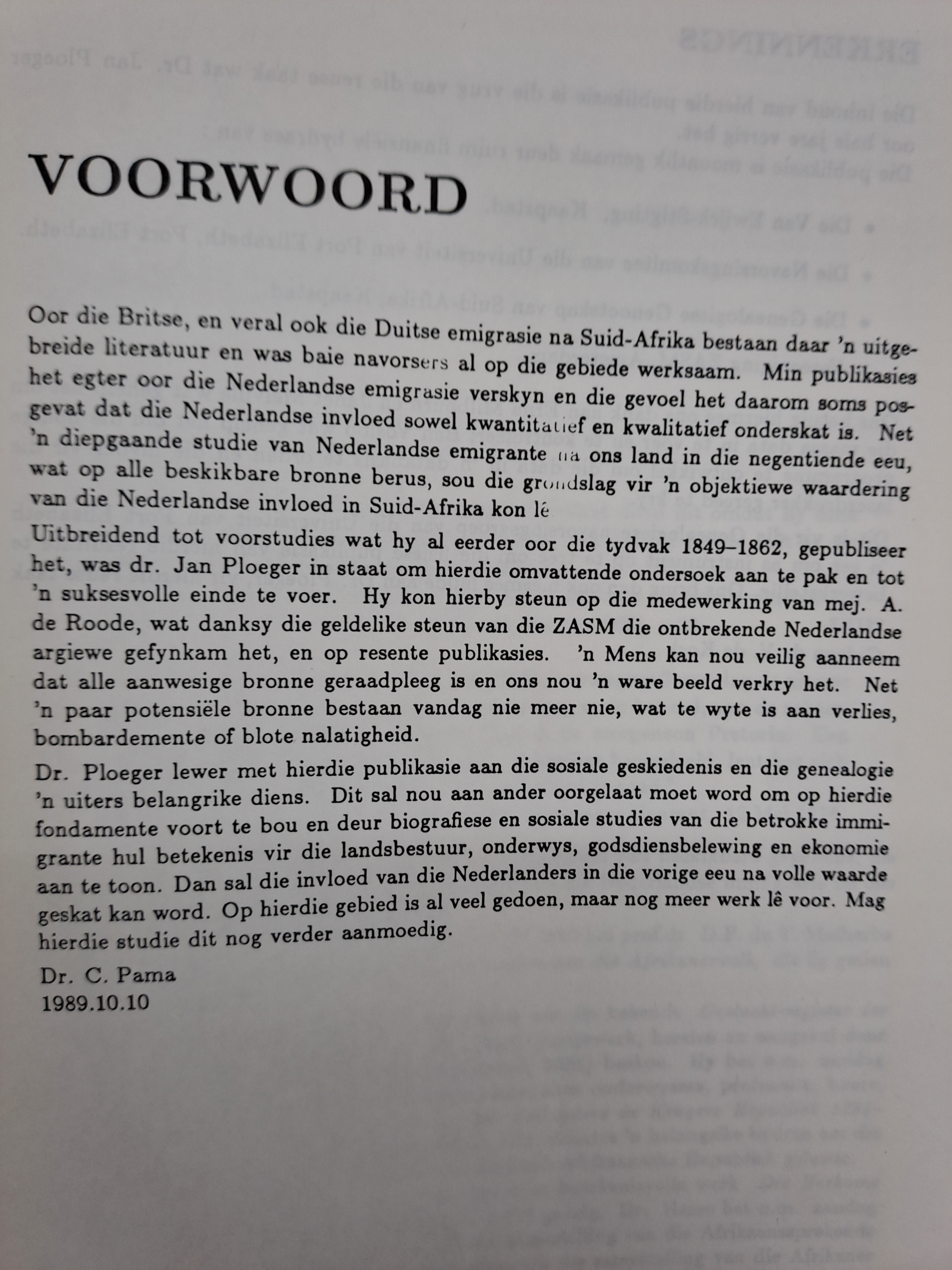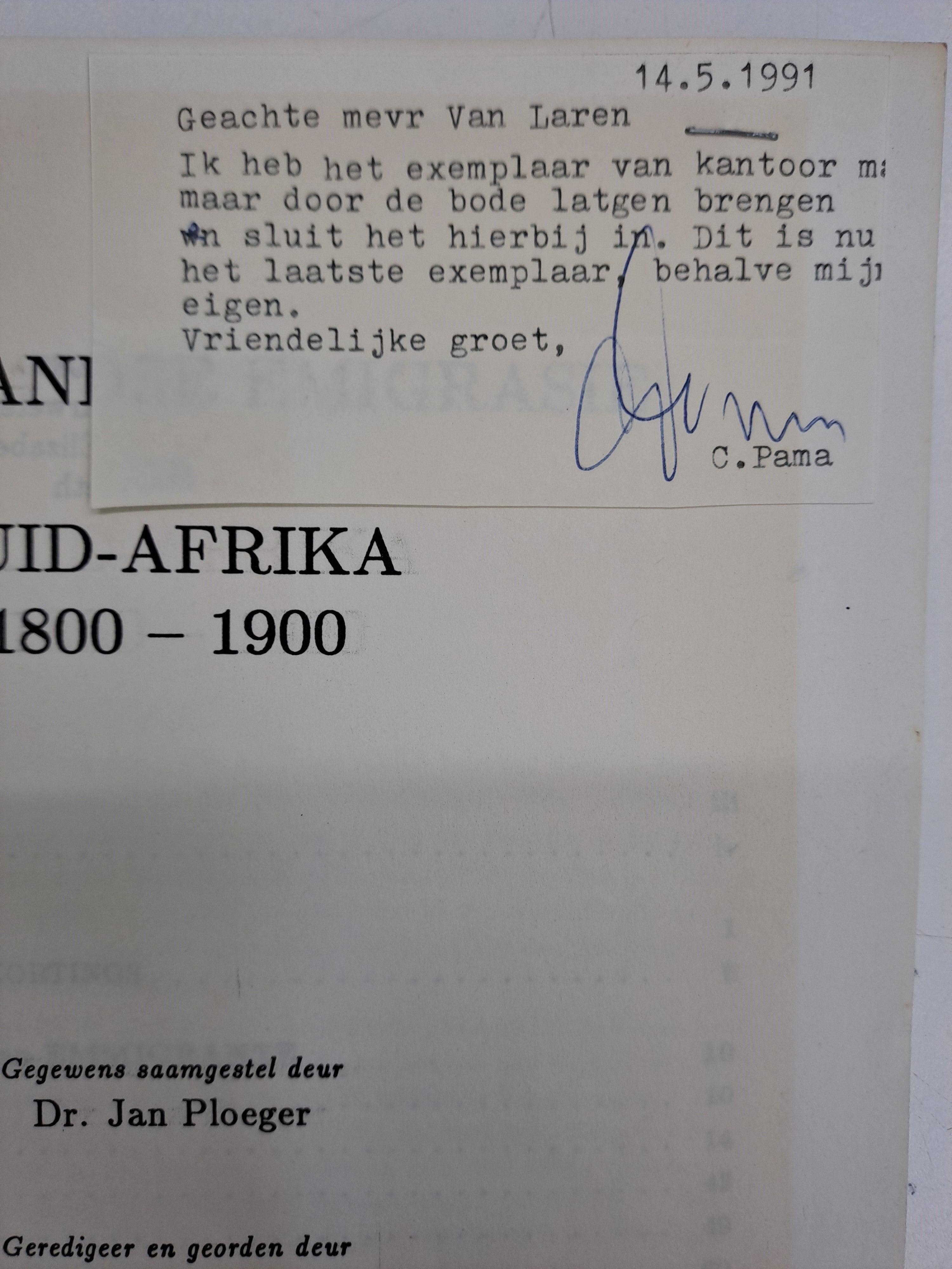 Nederlandse Emigrasie na Suid-Afrika 1800 - 1900 - Gegewens saamgestel deur Dr. Jan Ploeger ; geredigeer en georden deur Prof. Gideon de V. de Kock.