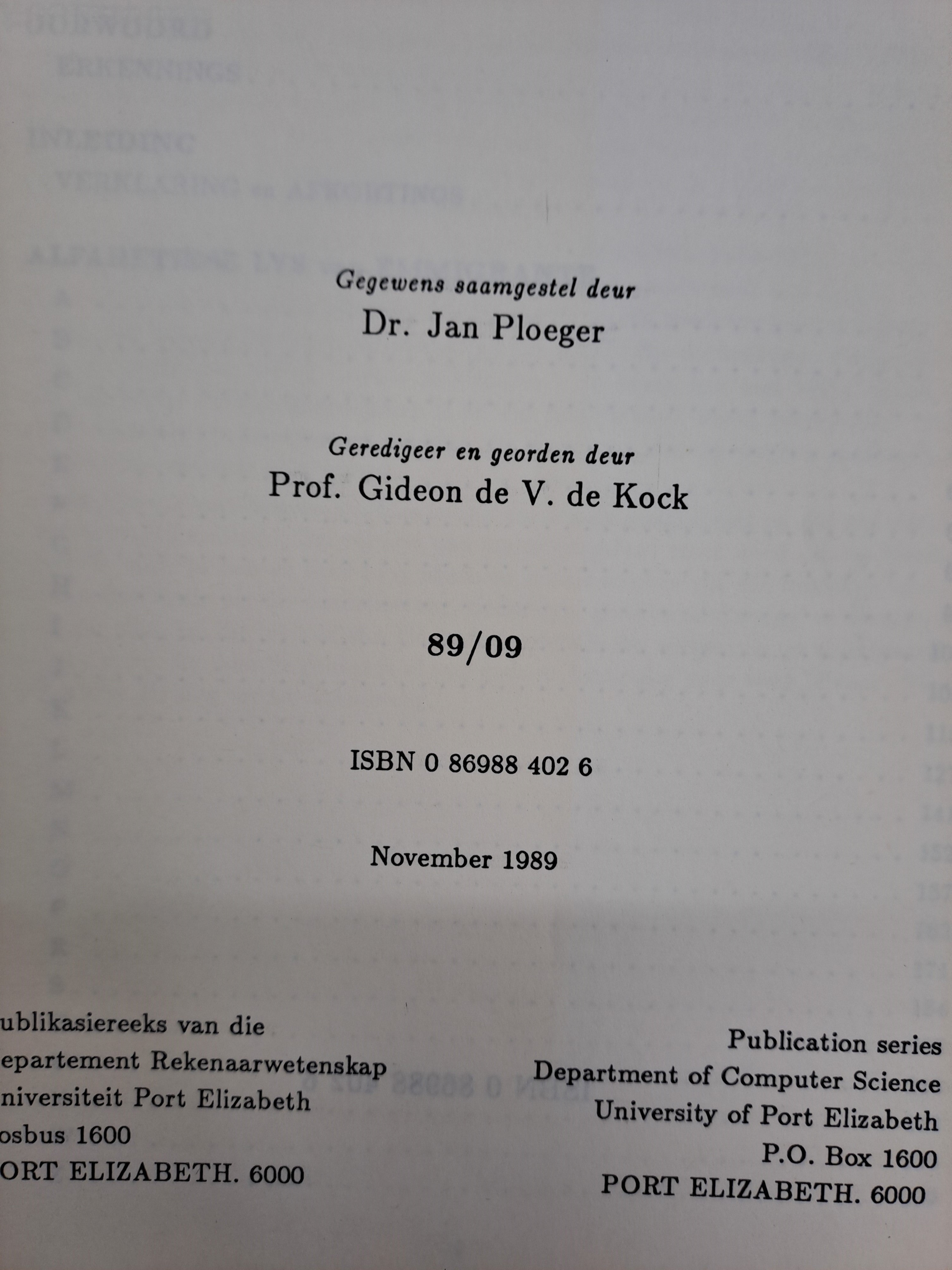 Series: Publikasiereeks / van die Departement Rekenaarwetenskap, Universiteit Port Elizabeth  Publication series / Department of Computer Science, University of Port Elizabeth ; 89/90