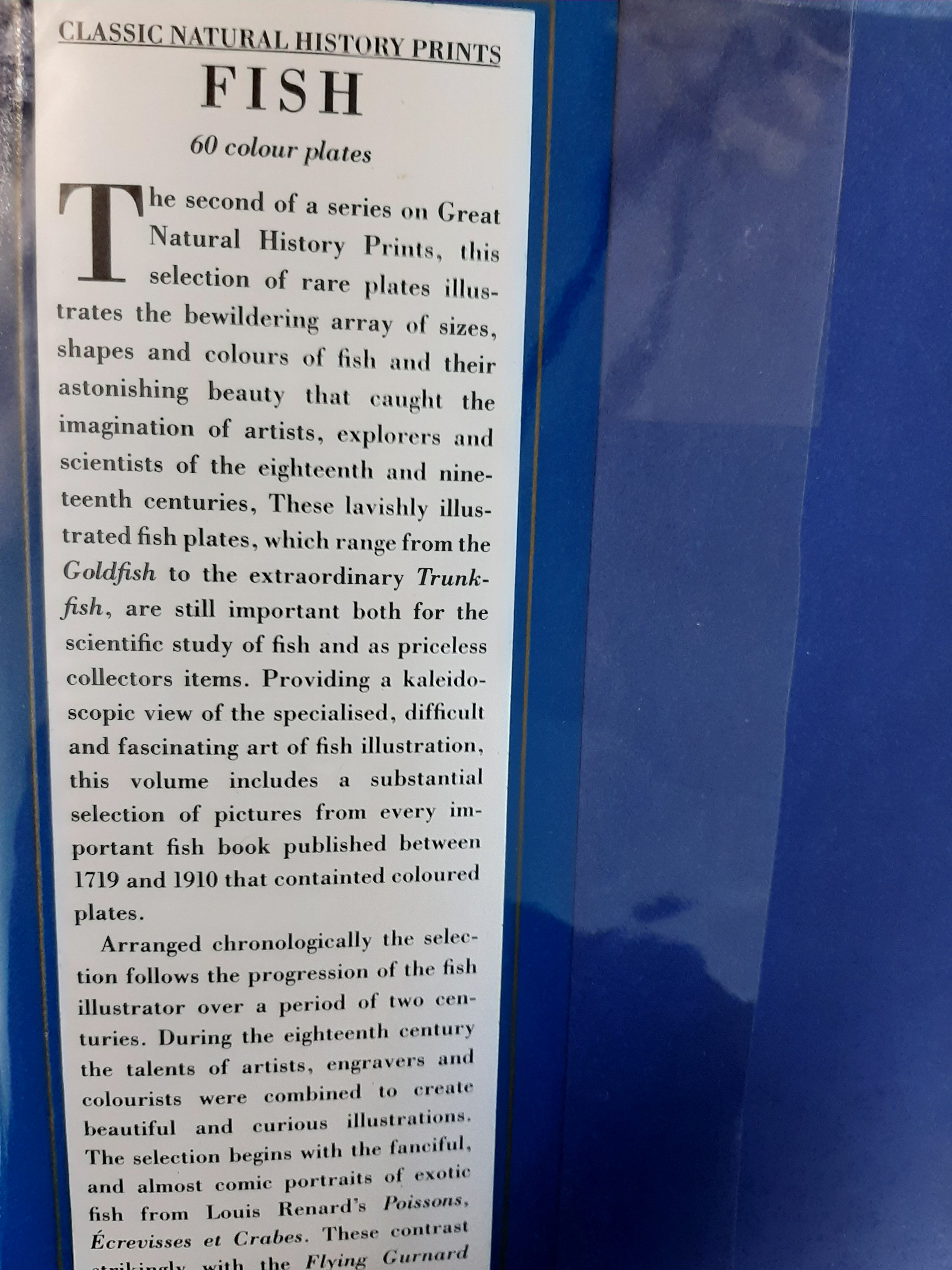 This book illustrates the bewildering array of sizes, shapes and colours of fish and their astonishing beauty that caught the imagination of artists, explorers and scientists of the eighteenth and nineteenth centuries. These lavishly illustrated fish plates which range from the Goldfish to the extraordinary Trunk-fish are still important both for the scientific study of fish and as priceless collectors items.