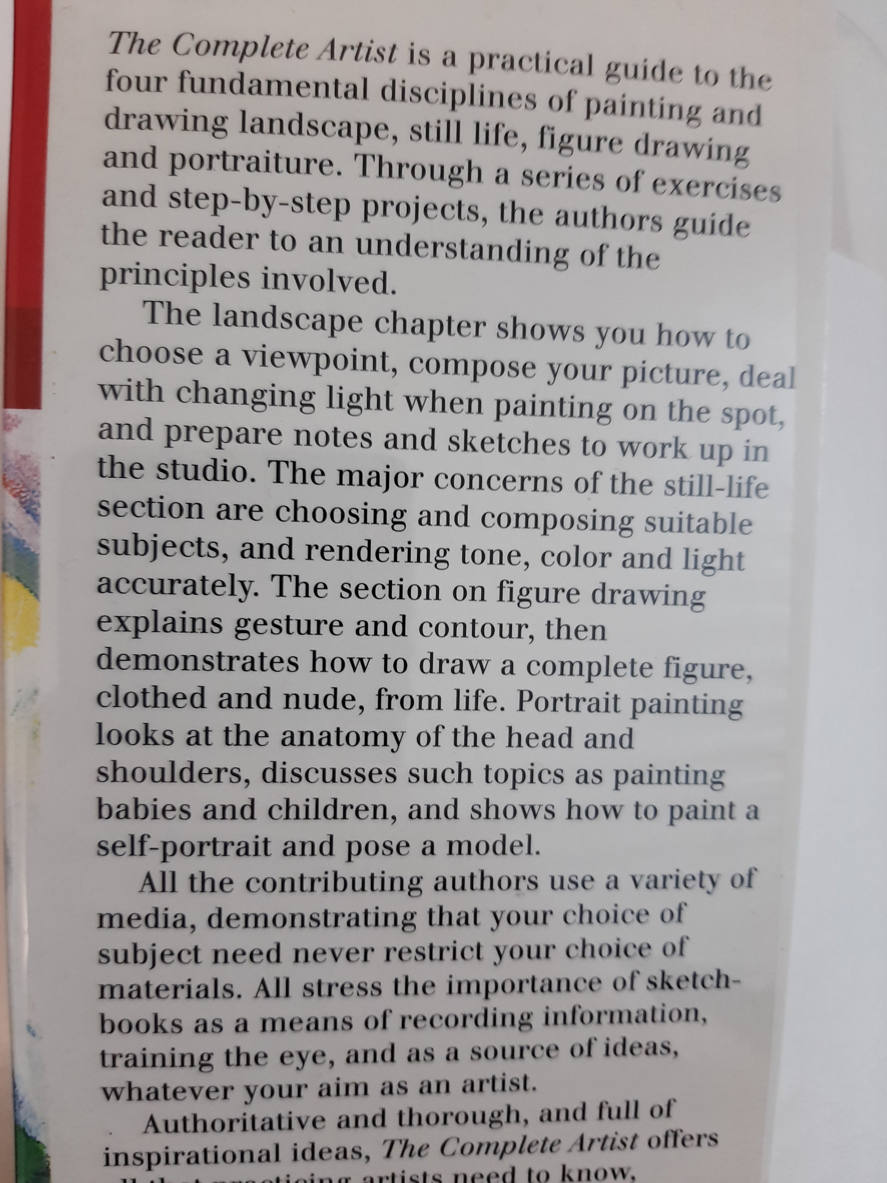 The Complete Artist is a practical guide to the four fundamental disciplines of painting and drawing landscape, still life, figure drawing and portraiture. Through a series of exercises and step-by-step projects, the authors guide the reader to an understanding of the principles involved. The landscape chapter shows you how to choose a viewpoint, compose your picture, deal with changing light when painting on the spot, and prepare notes and sketches to work up in the studio. The Complete Artist offers all that practicing artists need to know, whatever their competence, subject of interest or favorite media.