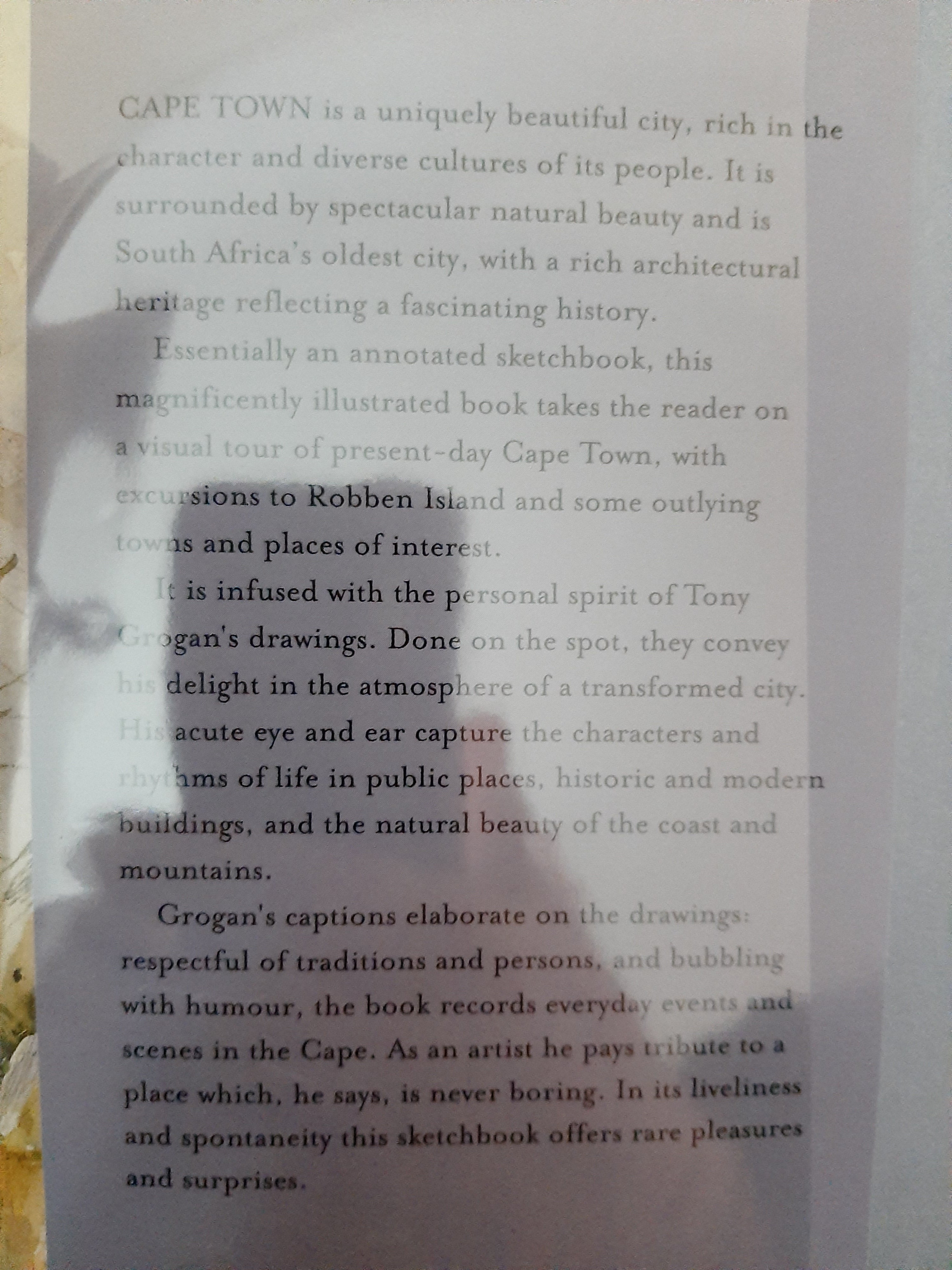 Essentially an annotated sketchbook, this magnificently illustrated book takes the reader on a visual tour of present-day Cape Town, with excursions to Robben Island and some outlying towns and places of interest.