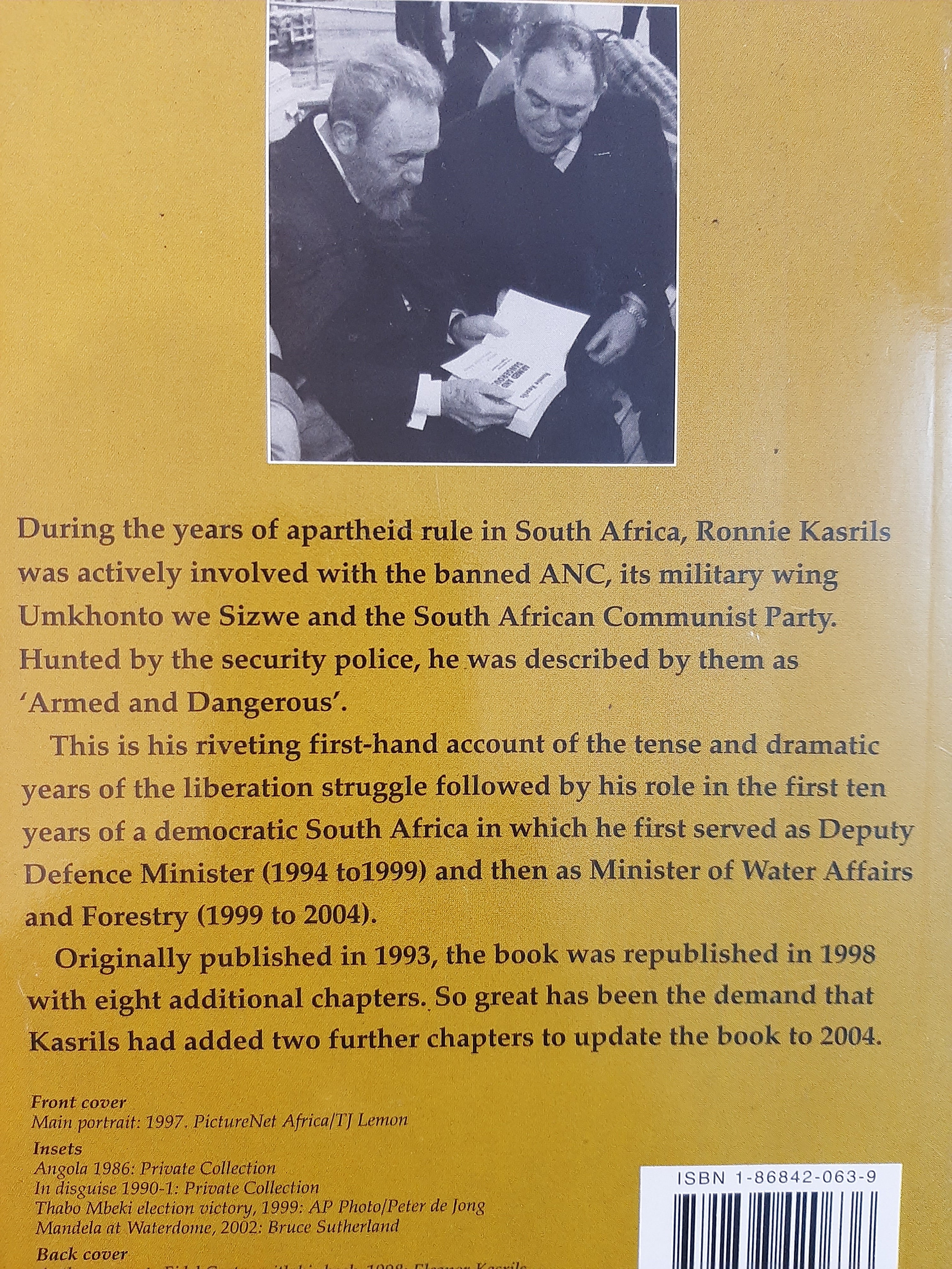 During the years of apartheid rule in South Africa, Ronnie Kasrils was actively involved with the banned ANC, its military wing Umkhonto weSizwe and the South African Communist Party. Hunted by the security police, he was described by them as "Armed and Dangerous." This is his riveting first-hand account of the tense and dramatic years of the liberation struggle followed, by his role in the first ten years of a democratic South Africa in which he first served .as Deputy Defence Minister .(1994 to l999) and then as Minister of. Water Affairs and Forestry (1999 to 2004). Originally published in 1993, the book was republished in 1998 with eight additional chapters.. So great has been the demand that Kasrils had added further chapters to update the book to 2004.