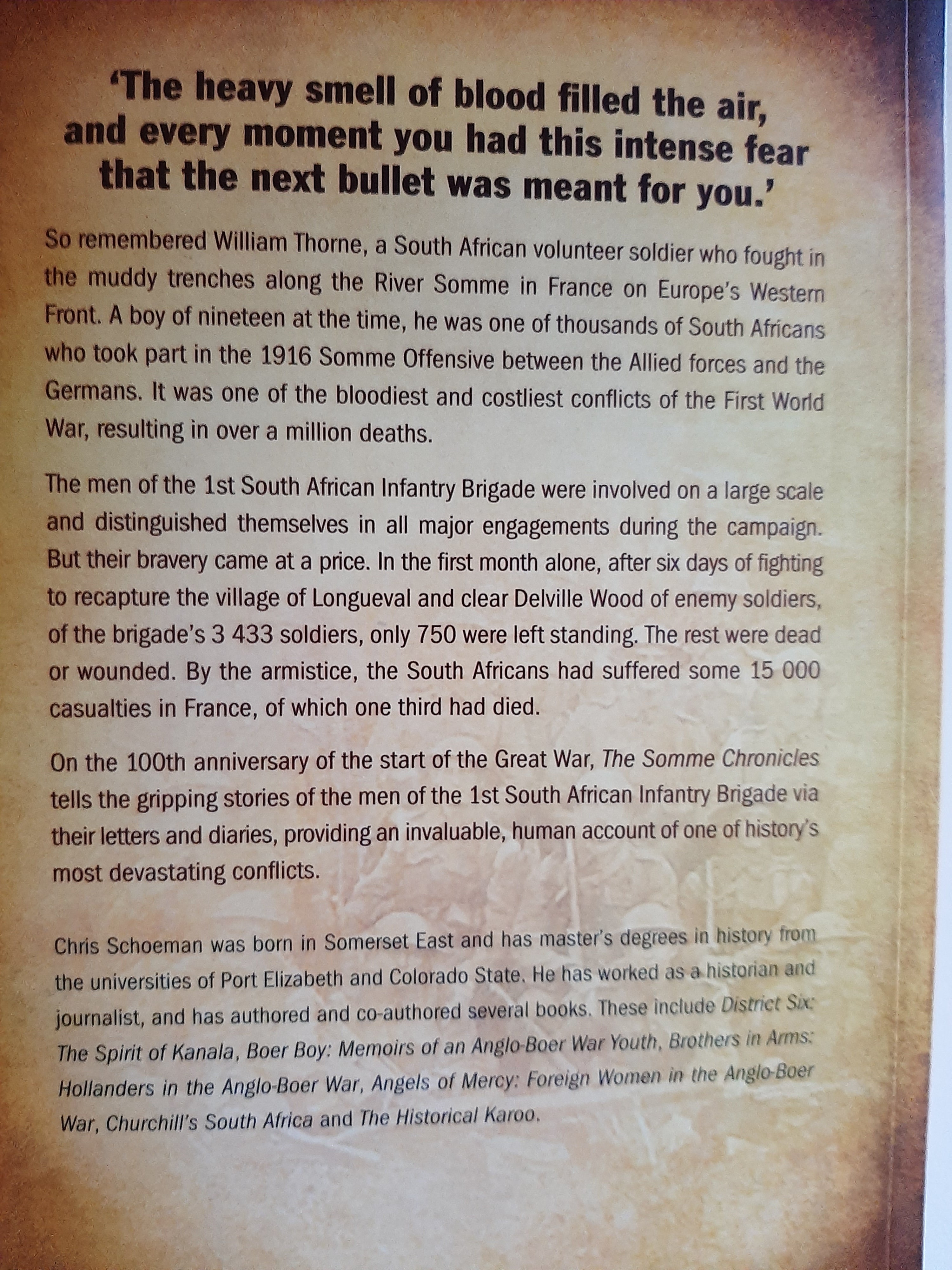 On the 100th anniversary of the start of the Great War, The Somme Chronicles tells the gripping stories of the men of the 1st South African Infantry Brigade via their letters and diaries, providing an invaluable, human account of one of history’s most devastating conflicts.