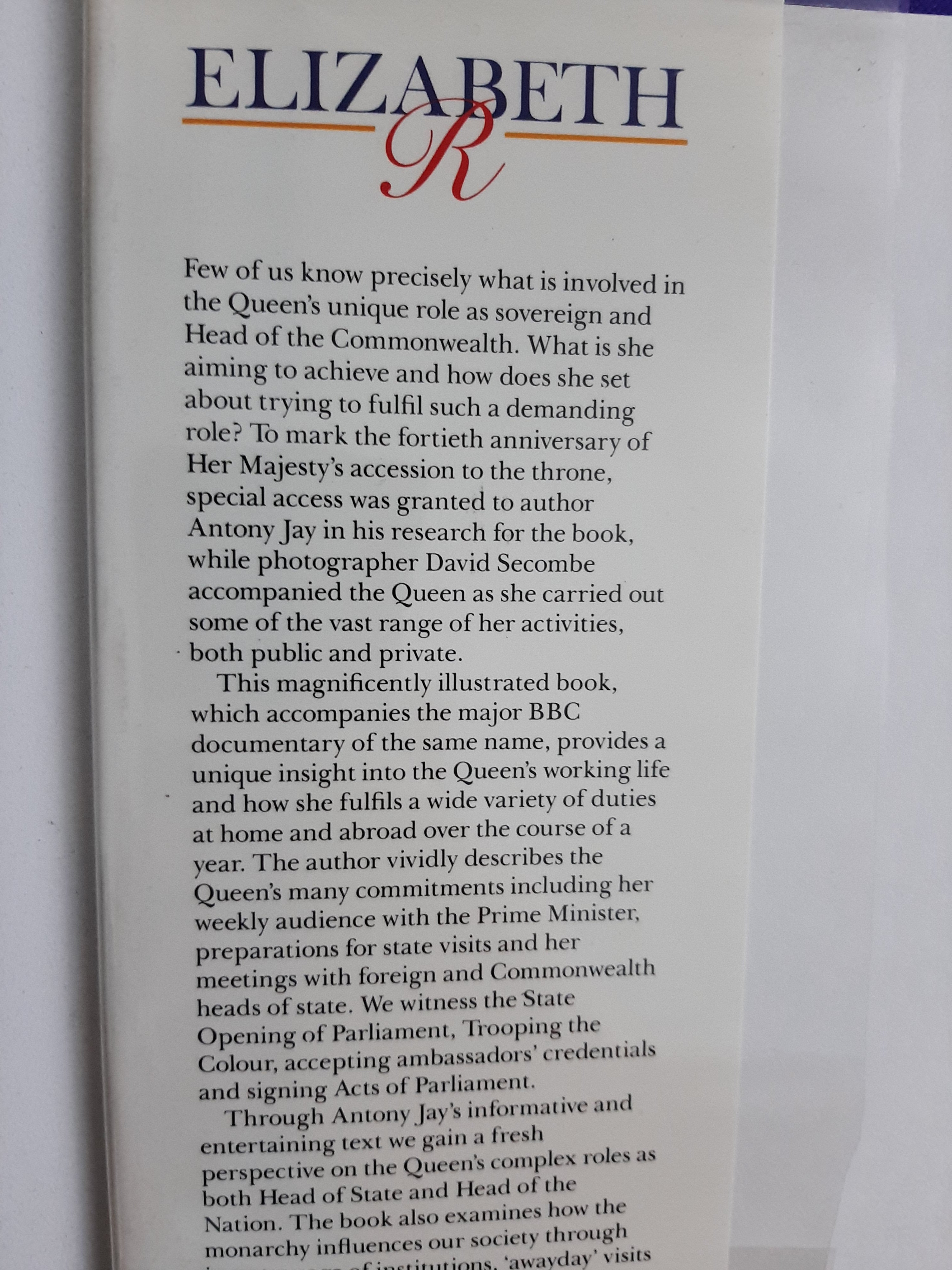 Published to mark the 40th anniversary of Queen Elizabeth II's accession to the throne, this illustrated book offers an insight into the working of the monarchy. The author was granted access to confidential information and the photographer was allowed to accompany The Queen as she carried out the great range of her activities, both public and private. The reader is taken behind the scenes at home and abroad to see how The Queen and her staff prepare for and undertake a wide variety of events over the course of a year. Her complex roles are examined - as constitutional sovereign in relation to the British Government and representing Britain to the rest of the world, and as a social influence expressed through the honours system, garden parties, personal contacts and relationship with the communications media. Sir Antony Jay is the co-writer of BBC Television's "Yes, Minister" and "Yes, Prime Minister". The book accompanies a 90 minute BBC TV documentary.