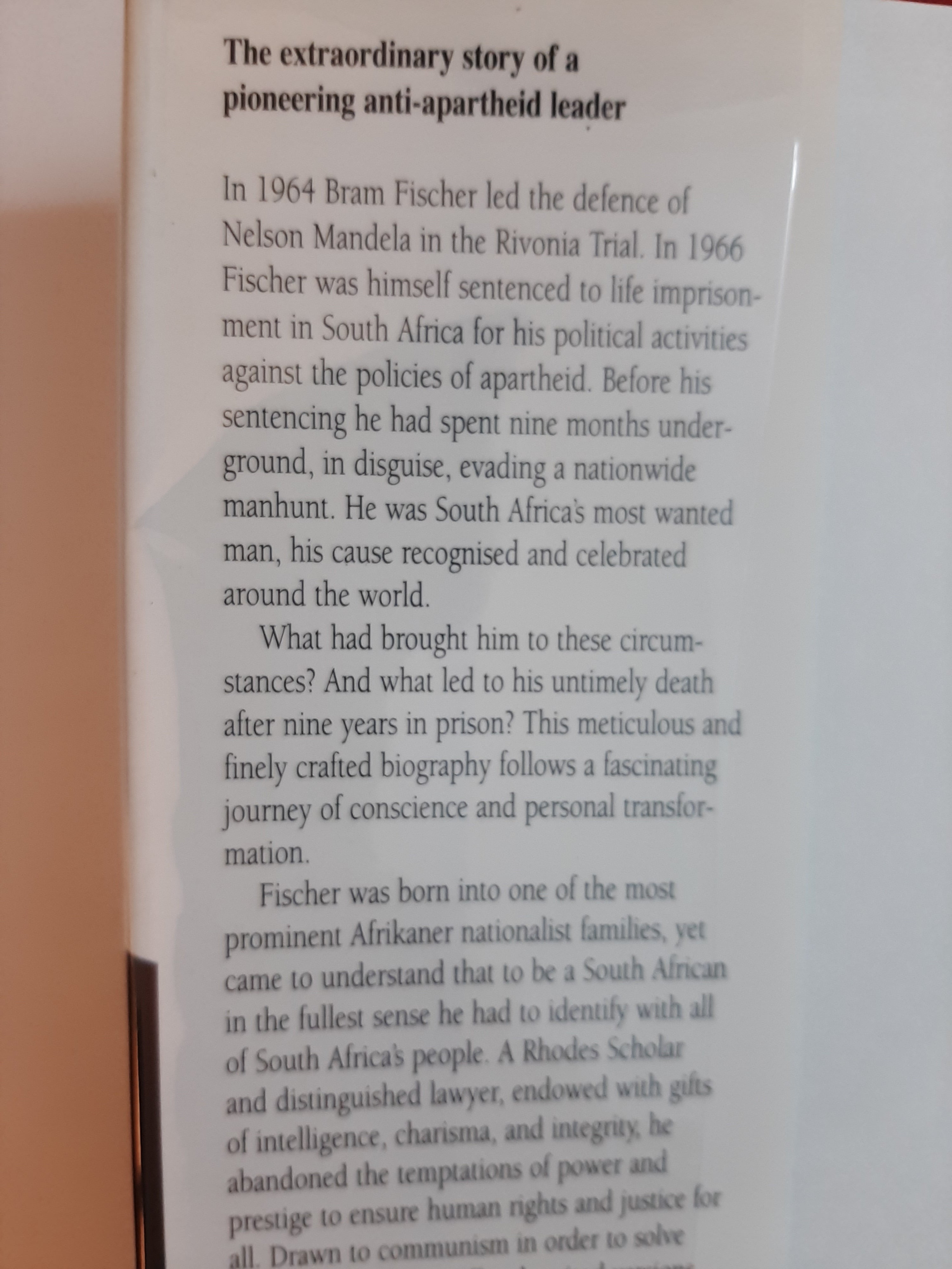 "Biography. Fischer was born into one of the most prominent Afrikaner nationalist families, yet came to understand that to be a South African in the fullest sense he had to identify with all of South Africa’s people. A Rhodes Scholar and distinguished lawyer, endowed with gifts of intelligence, charisma, and integrity, he abandoned the temptations of power and prestige to ensure human rights and justice for all. Drawn to communism in order to solve problems of race, he offered revised versions and visions of both. Covering more than one hundred years of South African history, the book ranges from the stories of Fischer and his wife, Molly, to the courtroom drama of South Africa’s great political trials, to the political intrigue of the 1960s and beyond."