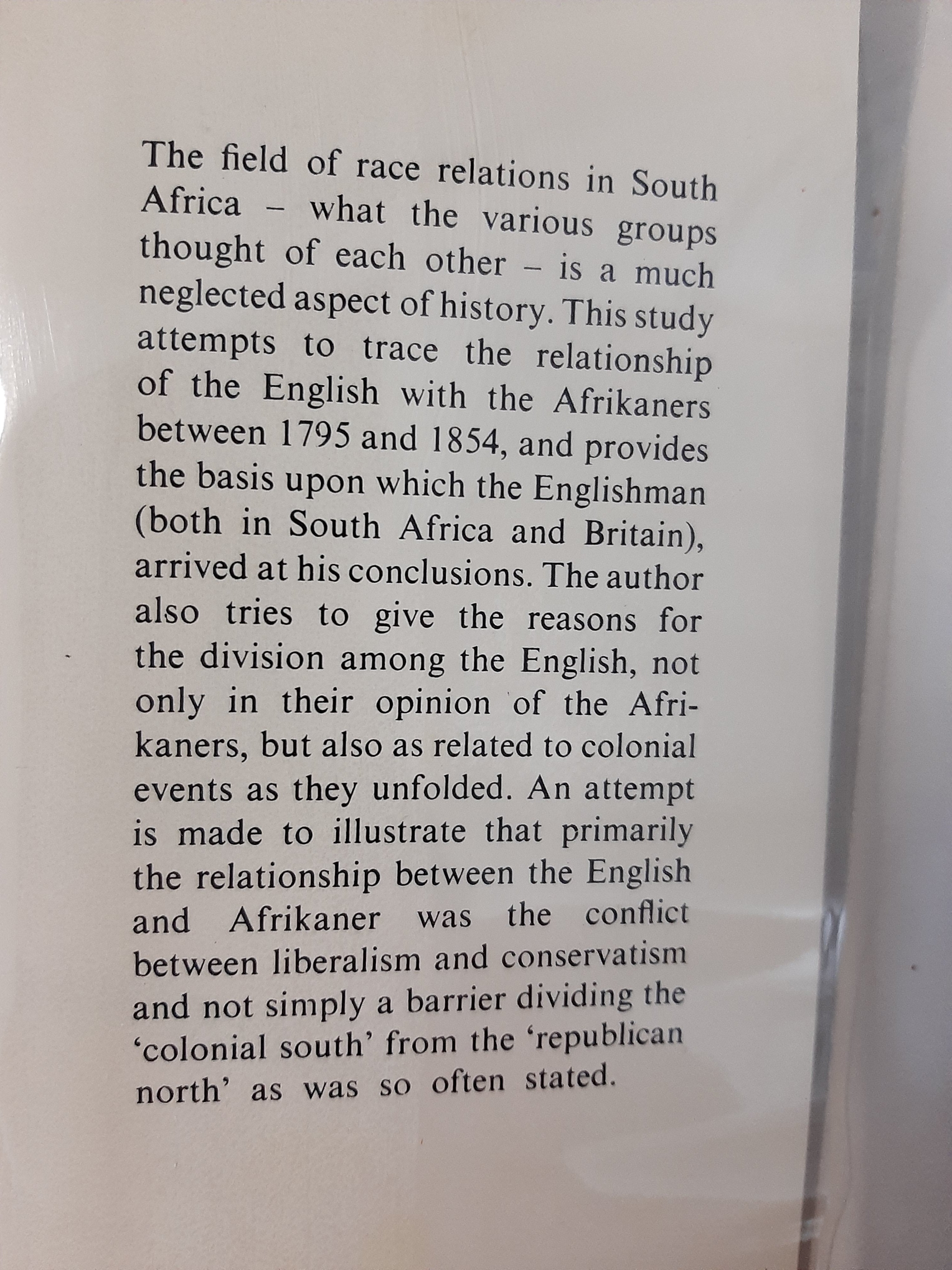 Traces the relationship of the English with the Afrikaner over this period and provides the basis upon which the Englishman both in South Africa and in Britain arrived at his conclusions. Looks at division among the English as to their opinions and deduces that the relationship of the English with the Afrikaner was the conflict between liberalism and conservatism.