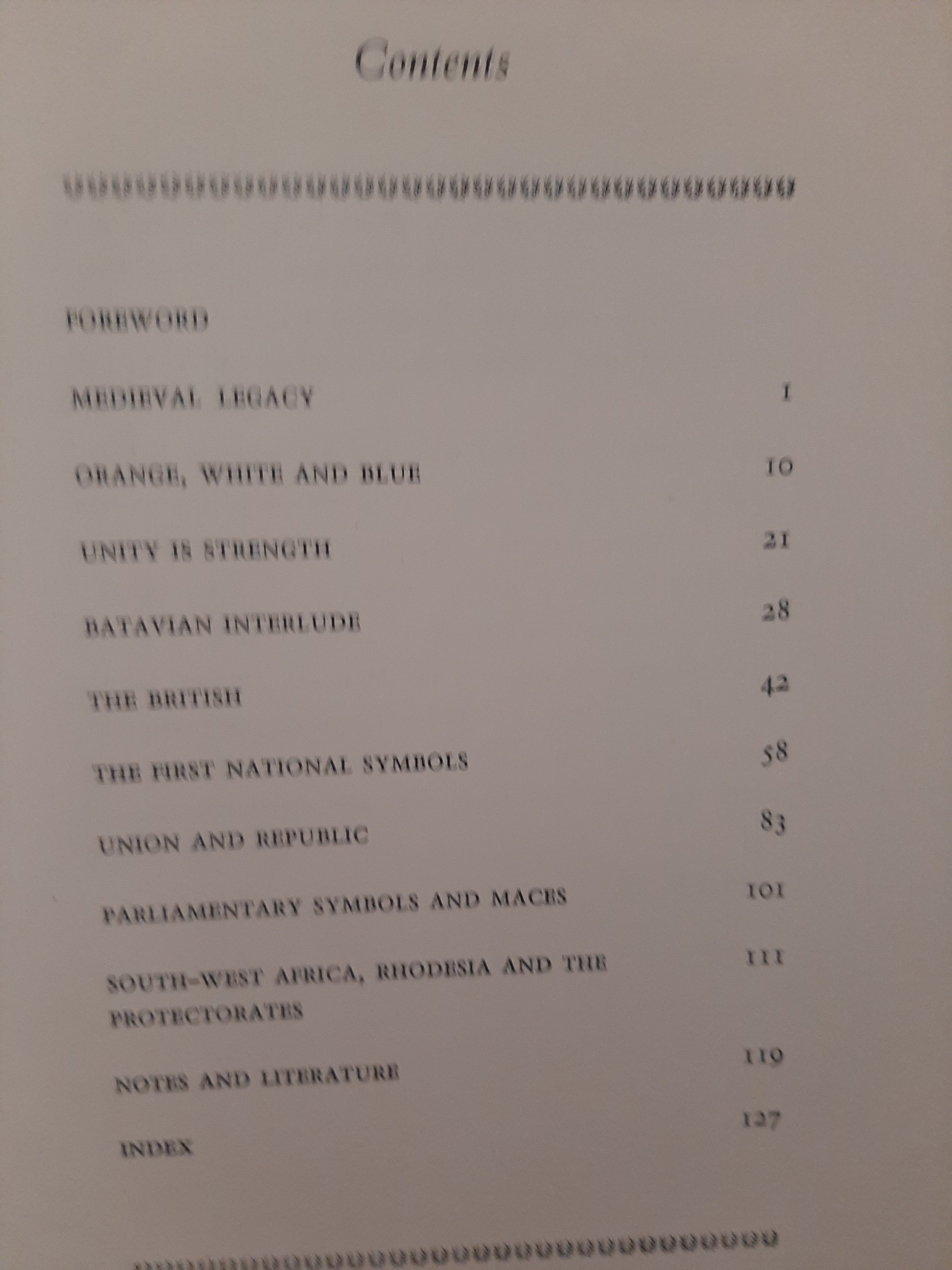 A very well illustrated work on the extensive historical use of state symbols in South Africa. Includes a chapter on then South West Africa, Rhodesia, and the protectorates up to the dissolution of the Central African Federation.