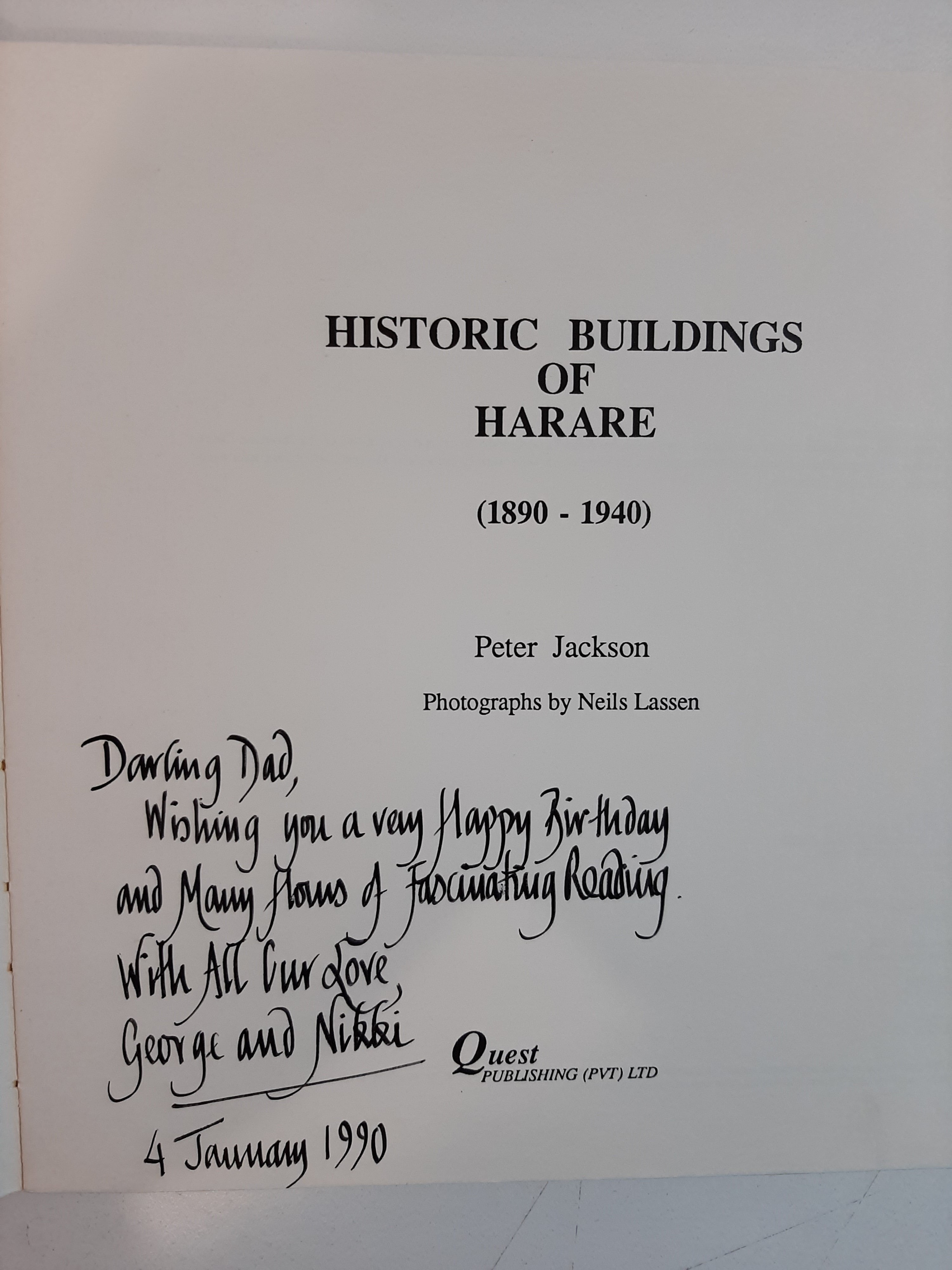 "The history of early colonial architecture illustrates the increasing economic power and resources of the settler population. The settlers arrived with an alien culture and foreign ideals which determined the forms of the new buildings and towns. Response to geography and climate modified those forms to fit better the local conditions." 23cm x 22cms. Pp.x/134, black & white photo illustrations throughout by Neils Lassen + 4 photos of buildings by the author and pre-1940 photographs supplied by the National Archives of Zimbabwe, 8 maps/plans,