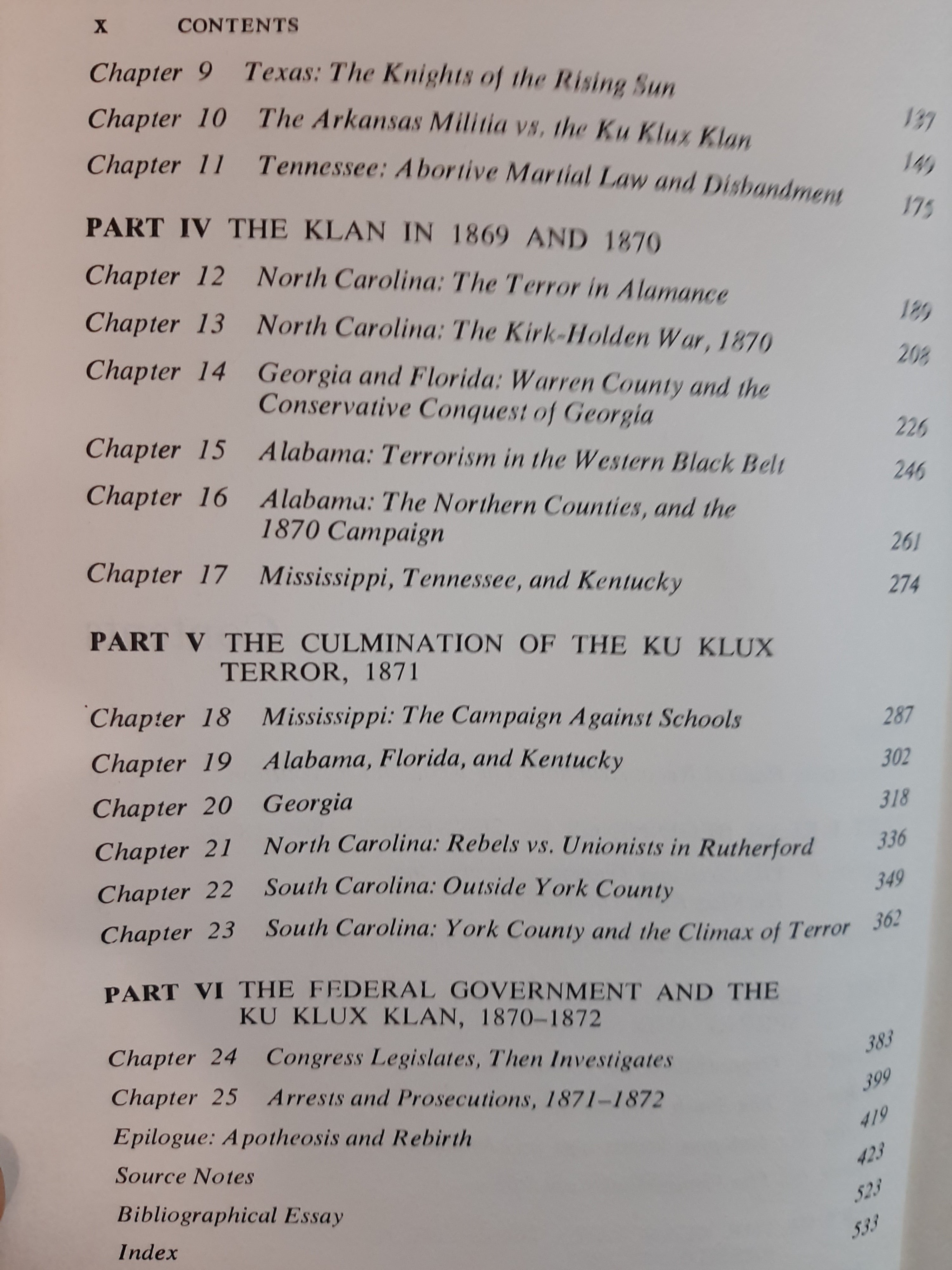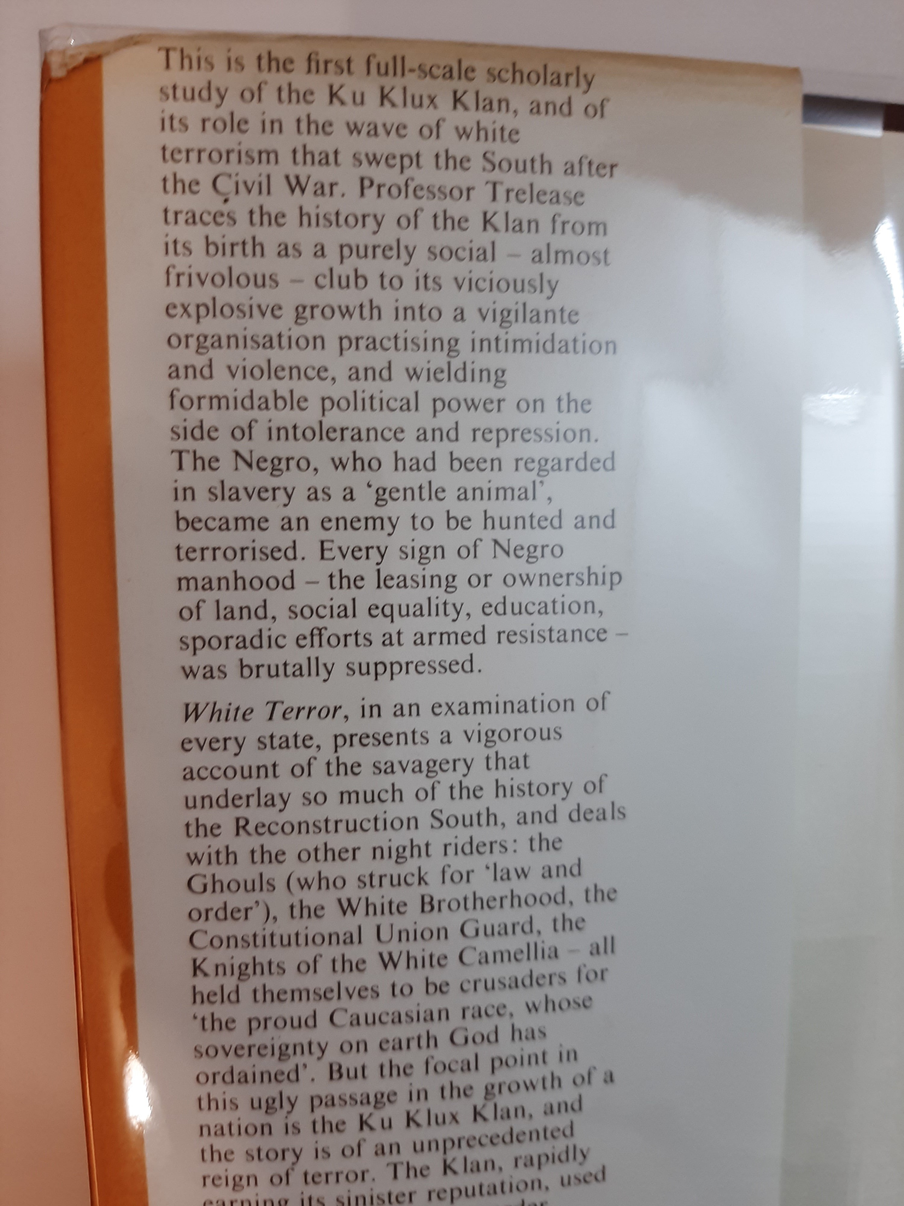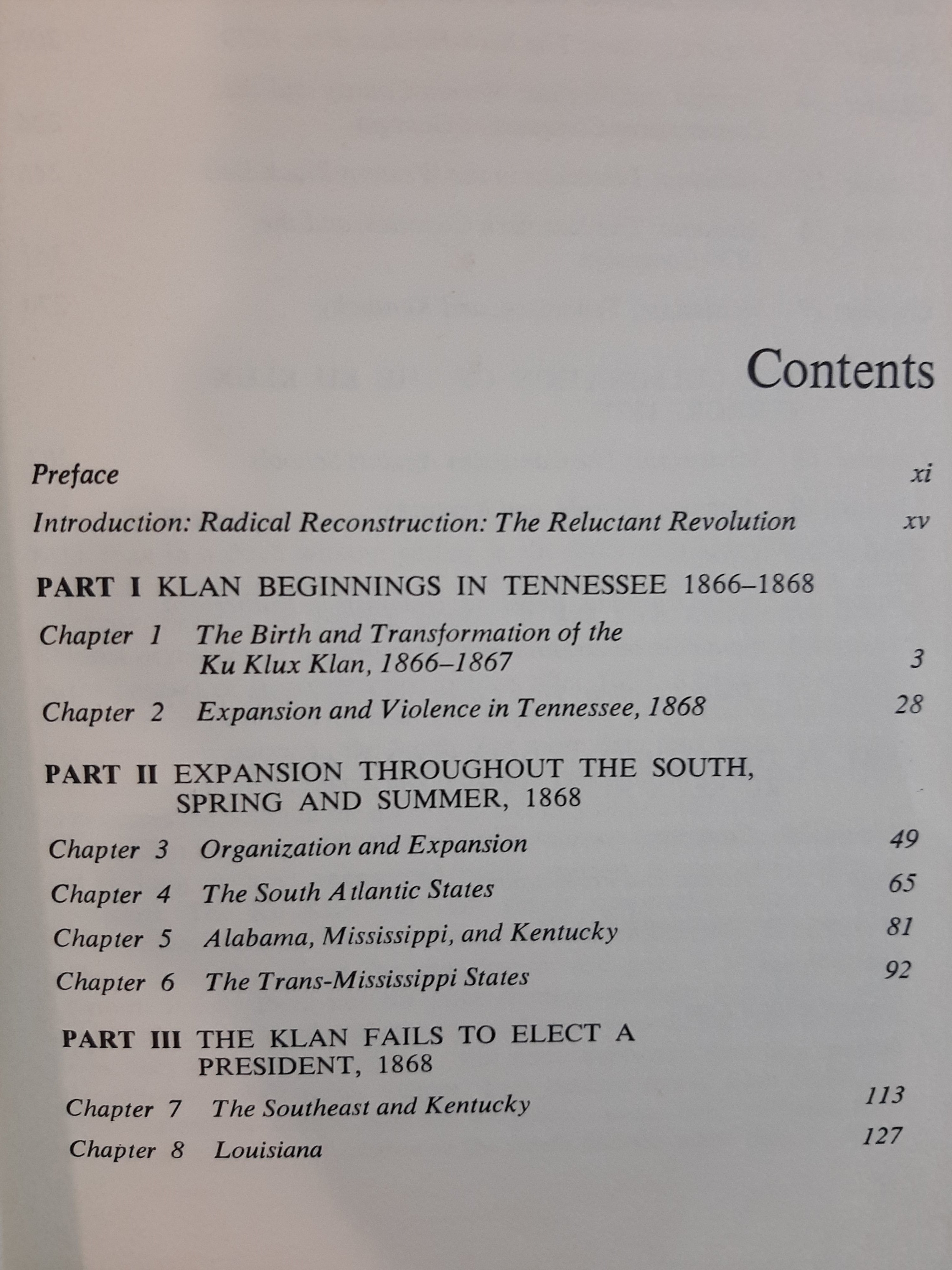 Trelease's thesis that the Klan was a white supremist reaction to real and growing black power is well documented and the style is lively. The book will long be essential reading for serious students of all aspects of Reconstruction and those with a general interest in southern history.