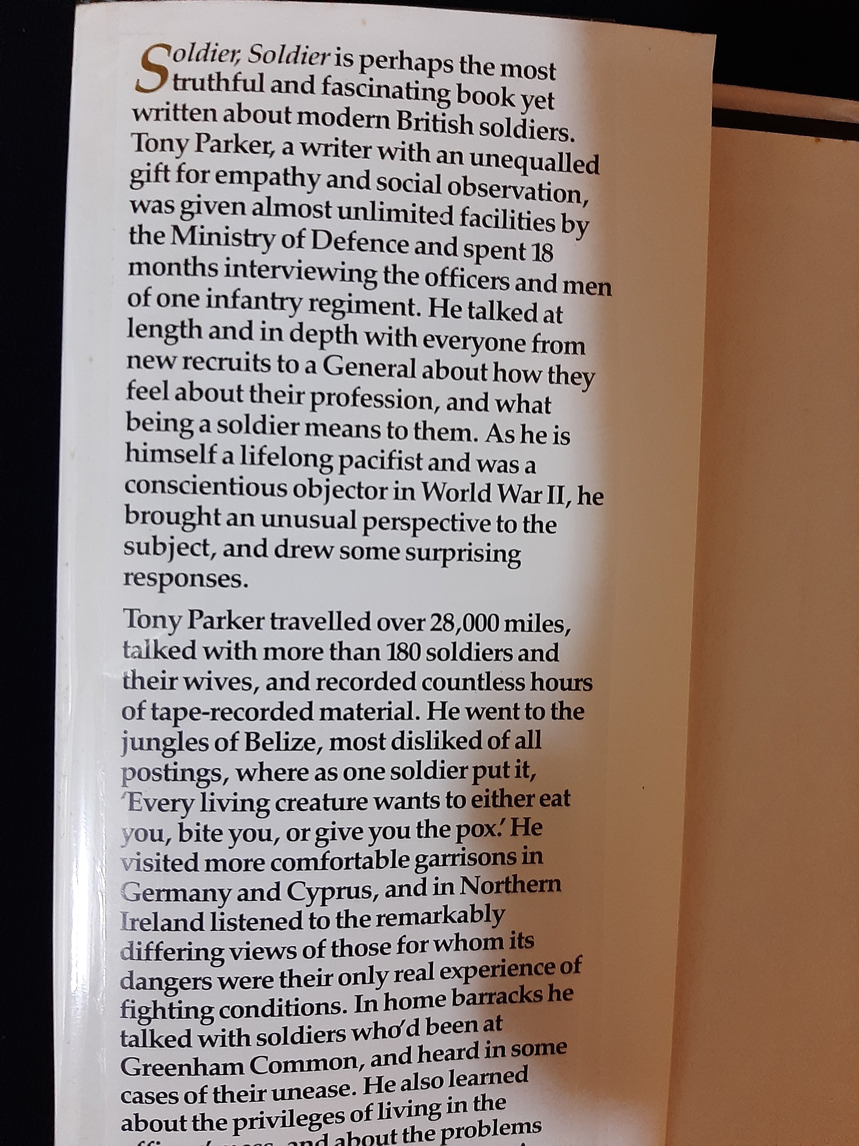 For his twelfth book, first published in 1985, Tony Parker was given near-unlimited access by the Ministry of Defence and spent eighteen months interviewing the officers and soldiers of a single British Army infantry regiment - as well as their wives. Both a pacifist and a former conscientious objector, Parker brought his singular perspective to the questioning of fighting men on what it means to bear arms for one's country.