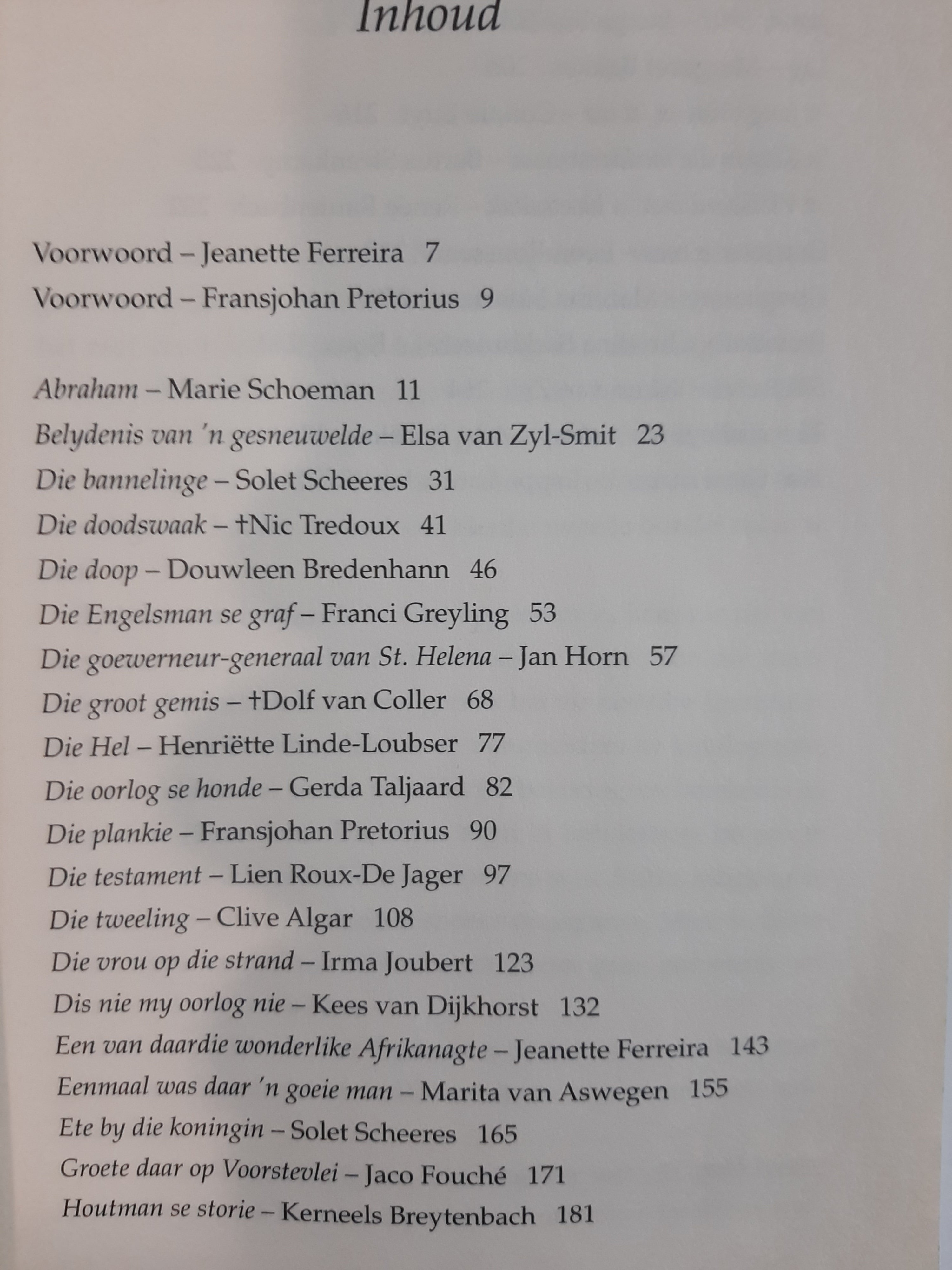 So suksesvol was Jeanette Ferreira se eerste versameling Boereoorlogstories dat sy gevra is om ’n tweede bundel kortverhale oor die Anglo-Boereoorlog saam te stel. Dit is dus eerstens ’n vervolg op die eerste bundel wat in 1998 uitgegee is vir die honderdjarige herdenking van die oorlog en wat intussen reeds verskeie herdrukke beleef het. Bekende en effe minder bekende kortverhaalskrywers is hier aan die woord. Verhale van bekende skrywers so uiteenlopend soos Franci Greyling en Maretha Maartens is opgeneem. Twee van die skrywers is al oorlede en twee verhale het voorheen in die vrouetydskrif Sarie verskyn. Verskeie verhale is op historiese bronne gebaseer. Die omslagontwerp is paslik versier met foto’s uit die versameling van die Oorlogsmuseum in Bloemfontein. Prof. Fransjohan Pretorius van die Departement Historiese en Erfenisstudies van die Universiteit van Pretoria het die historiese korrektheid van die verhale gekontroleer om seker te maak dat die historiese fiksie in ’n waarheidsgetroue en geloofbare milieu geplaas is.