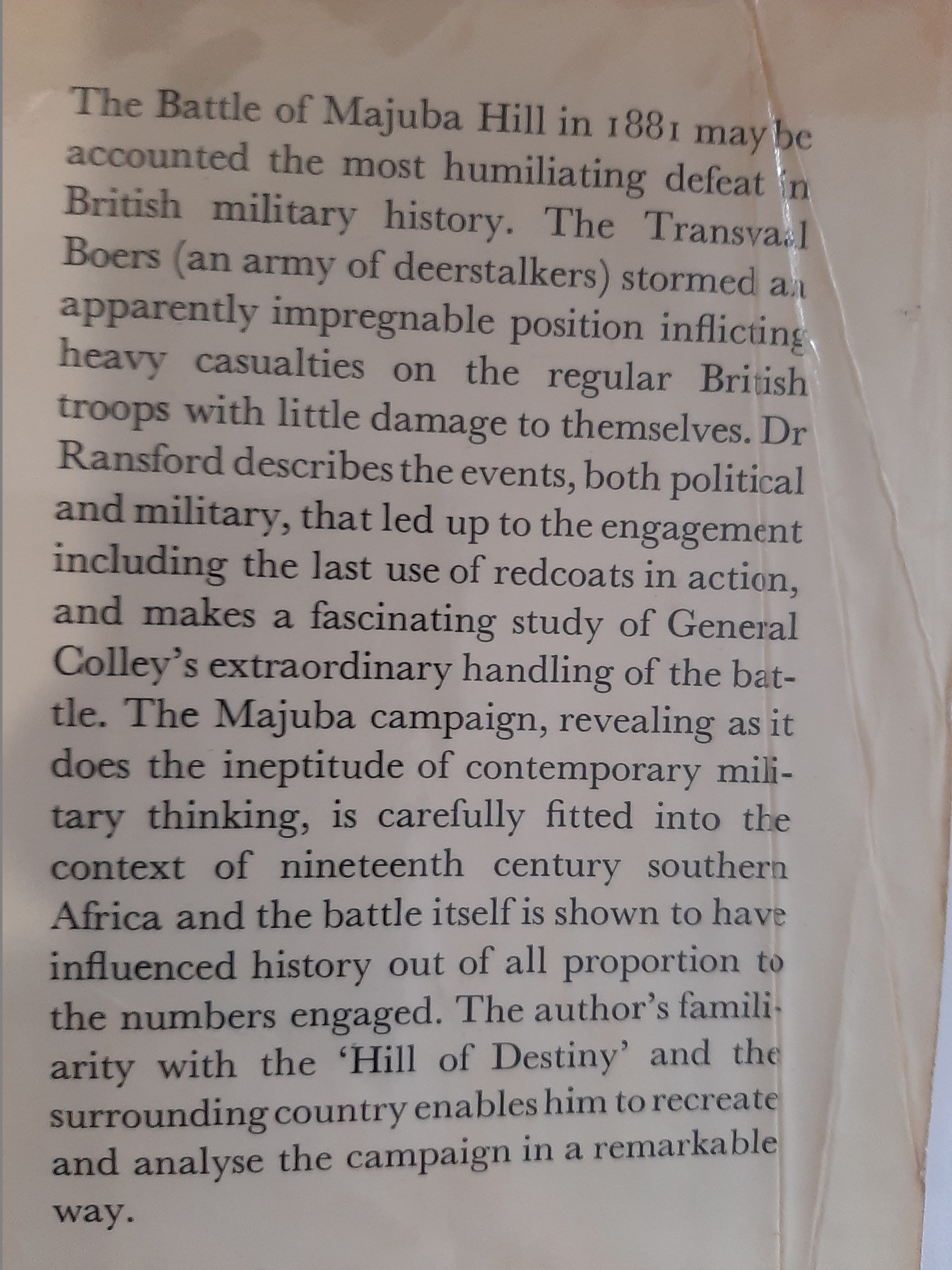 Dr Ransford describes the events, both political and military, that led up to the engagement including the last use of redcoats in action, and makes a fascinating study of General Colley’s extraordinary handling of the battle.