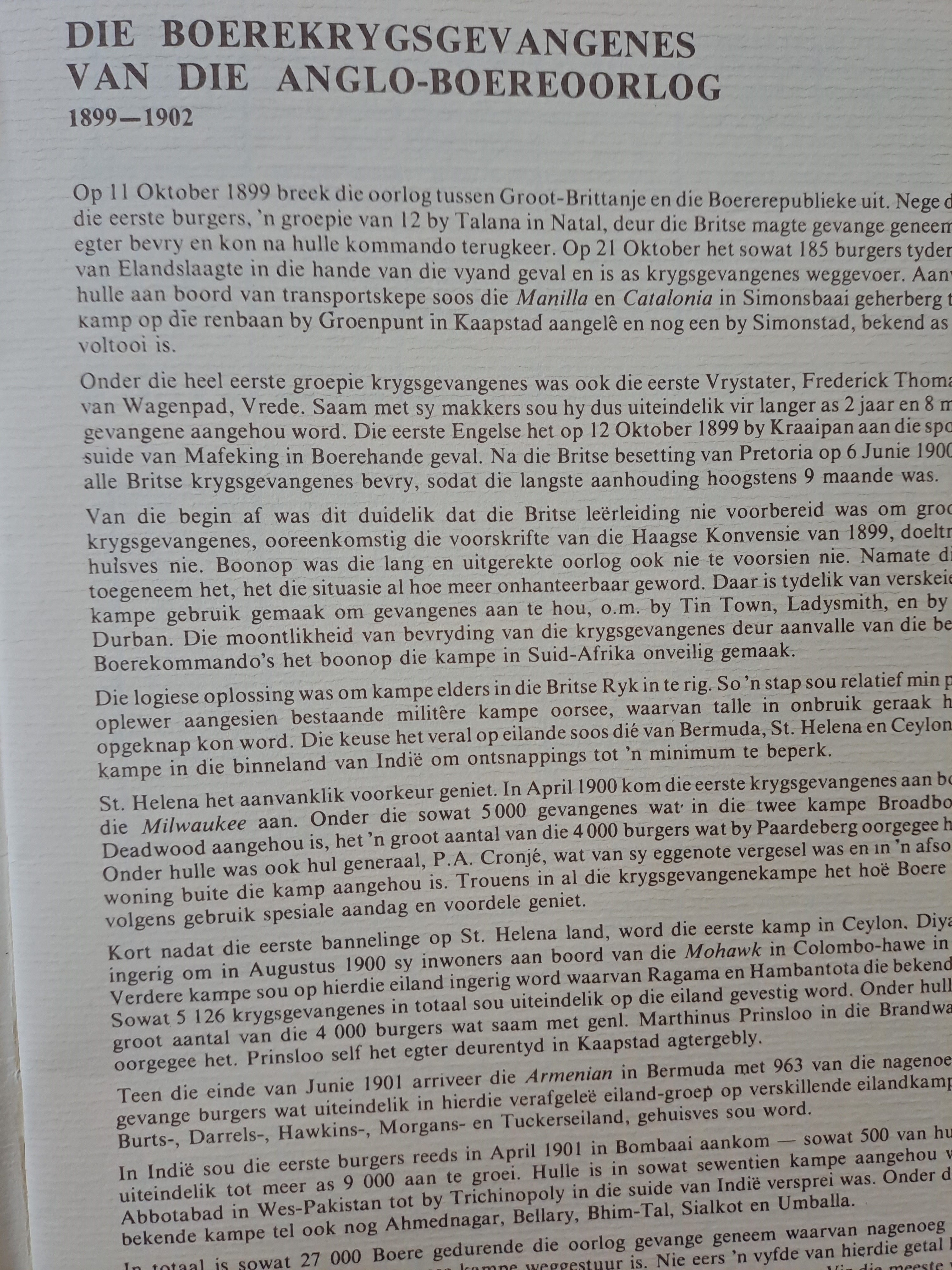 Deur middel van 'n aantal uitgesoekte foto's uit die duisende wat in die Oorlogsmuseum se versameling berus, word gepoog om 'n beeld van 'n godsdienstige, sosiale, kulturele, reaktiewe en alledaagsre lewe van die deursnee krygsgevanene te verstrek......