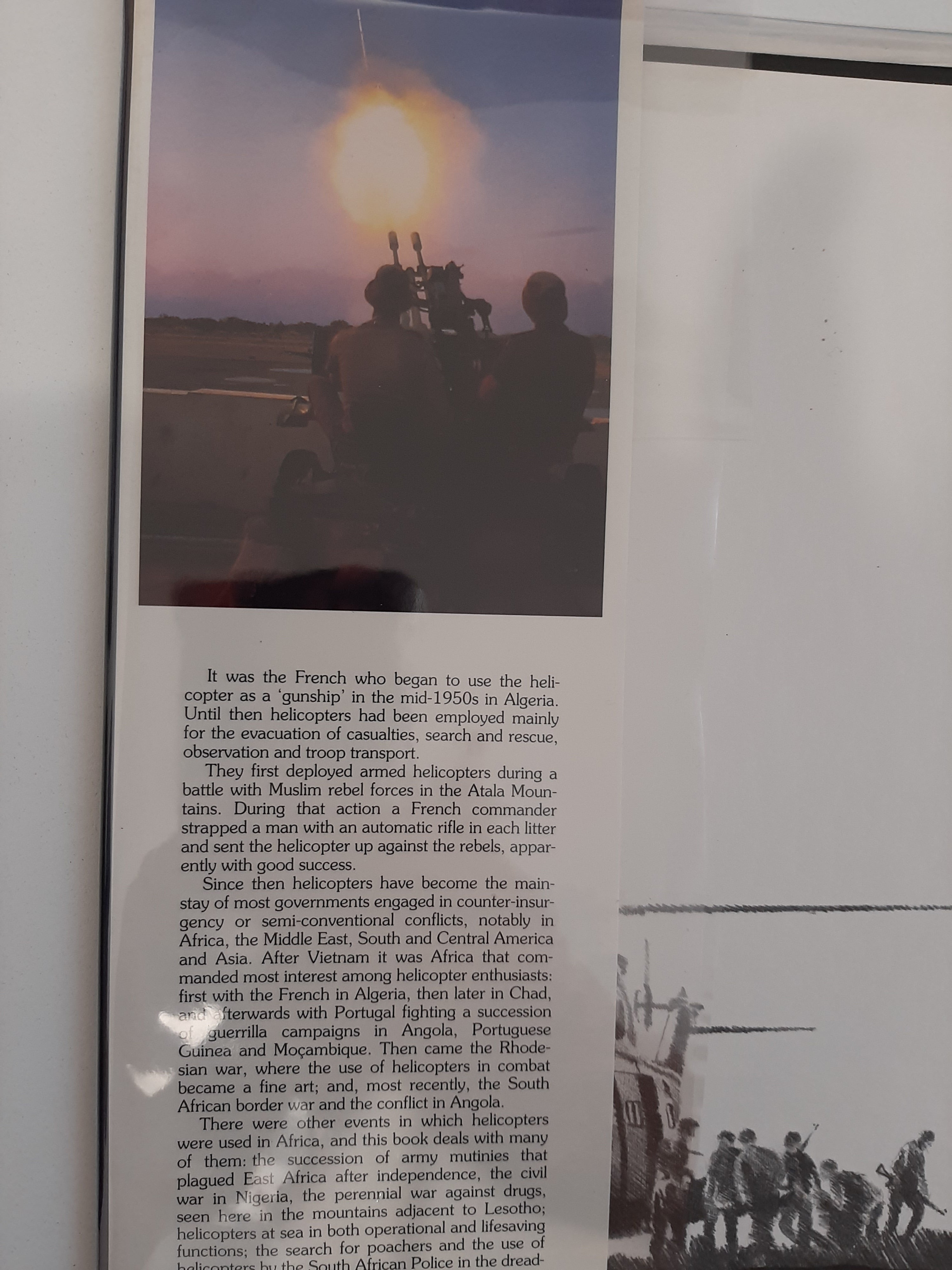It was exactly the same with Rhodesias war. Without gunships that guerrilla struggle would have been over in a couple of years, ground forces overwhelmed by preponderate insurgent numbers. Again, in South Africas Border War and the civil war that followed in Sierra Leone, it was gunships did most of the damage, as happened more recently with various mercenary groups fighting in Angola, Somalia and elsewhere.