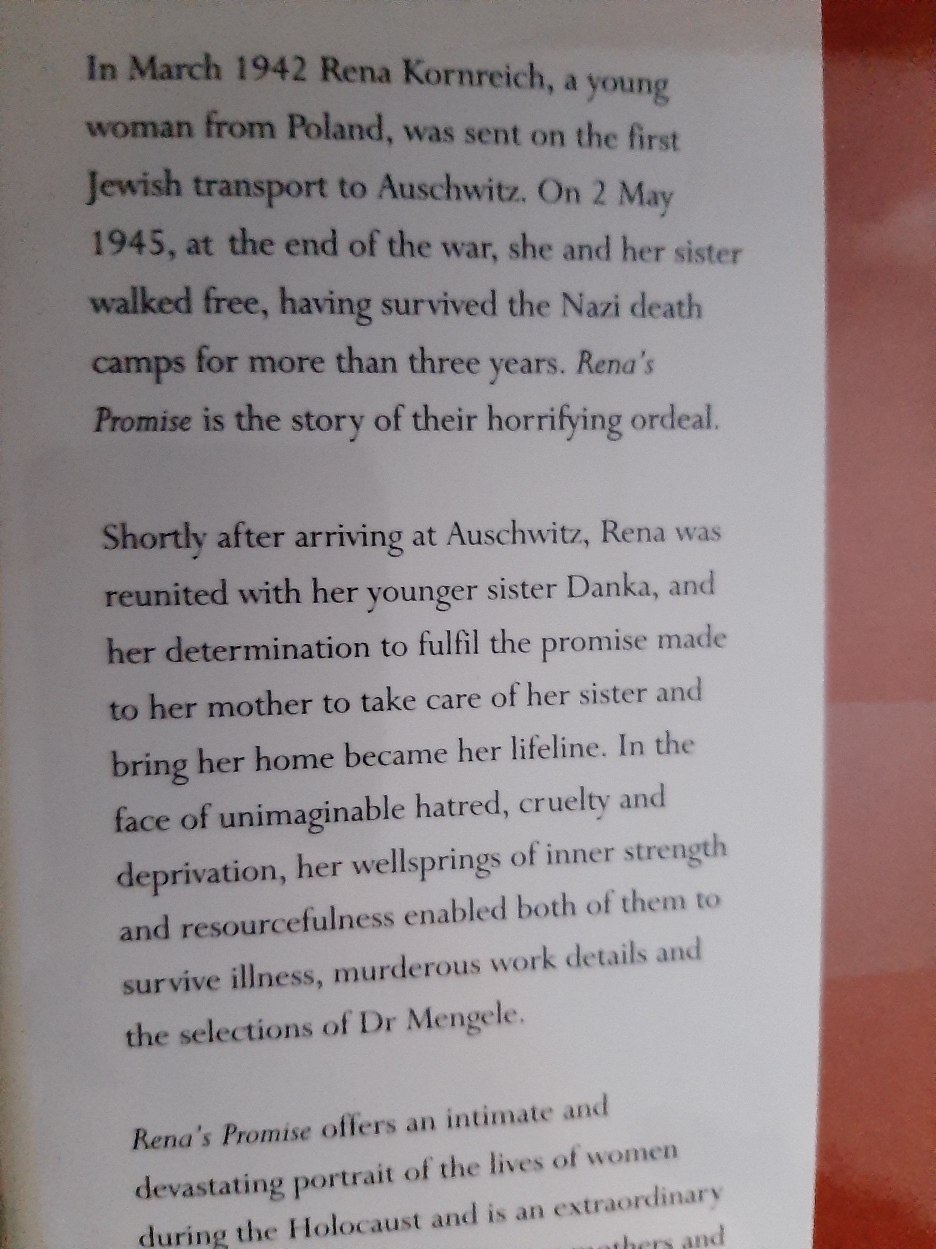 In March 1942 Rena Kornreich, a young woman from Poland, was sent on the first Jewish transport to Auschwitz. On 2 May 1945, at the end of the war, she and her sister walked free, having survived the Nazi death camps for more than three years. "Rena's Promise" is the story of their horrifying ordeal. Shortly after arriving at Auschwitz, Rena was reunited with her younger sister Danka, and her determination to fulfil the promise made to her mother to take care of her sister and bring her home became her lifeline. In the face of unimaginable hatred, cruelty and deprivation, her wellsprings of inner strength and resourcefulness enabled both of them to survive illness, murderous work details and the selections of Dr Mengele. "Rena's Promise" offers an intimate and devastating portrait of the lives of women during the Holocaust, and is an extraordinary testimony to the bonds between mothers and daughters, sisters, men and women prisoners, even prisoners and guards, as well as to the complex workings of our humanity when faced with so much that is inhuman. Above all, it is the unforgettable story of the small yet immeasurable triumph over evil of one woman's courage, love and will to live. --- Illustrated with black & white photographs.
