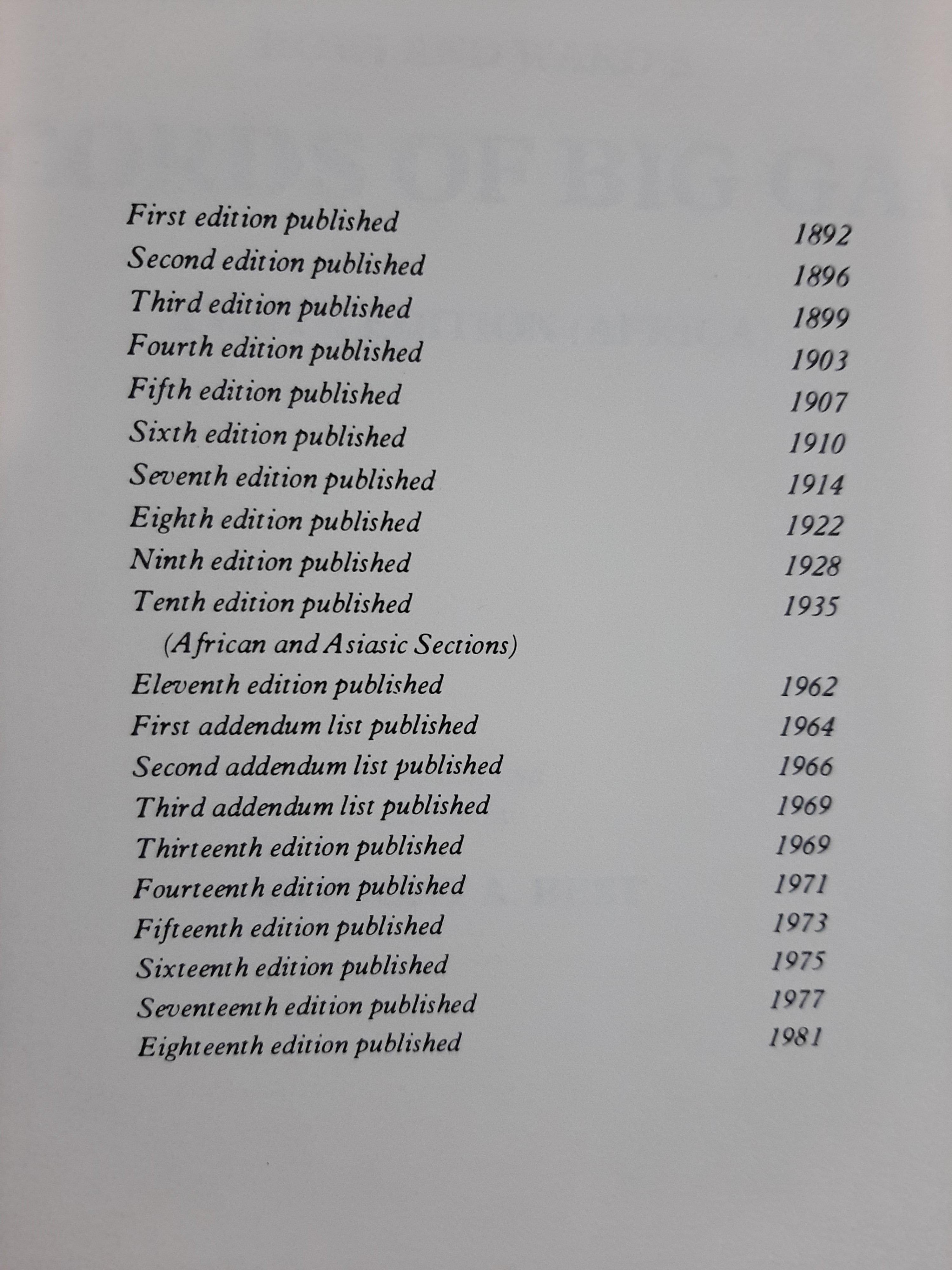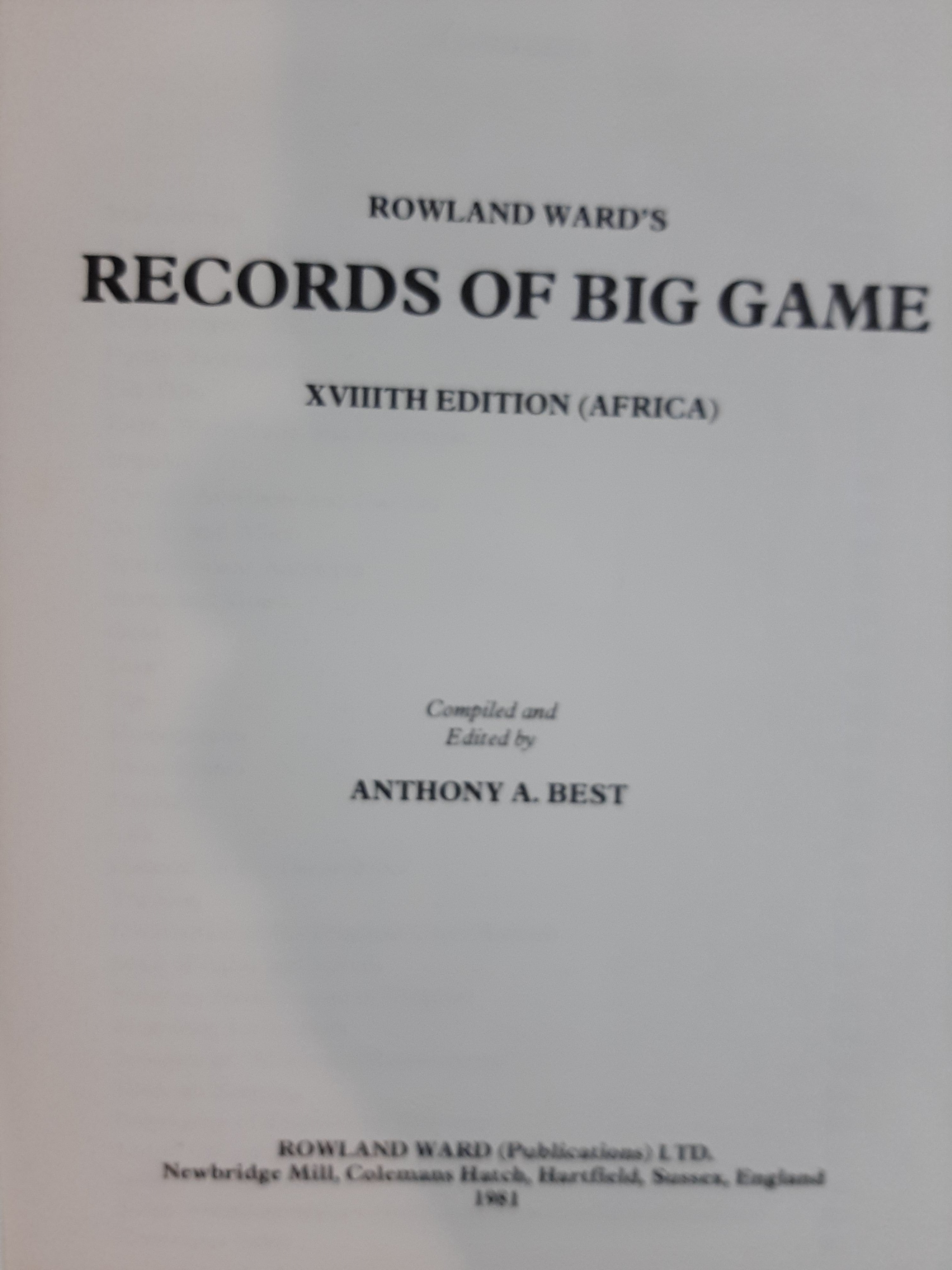 Rowland Ward's Records of big game Eighteenth Edition(Africa) 1981