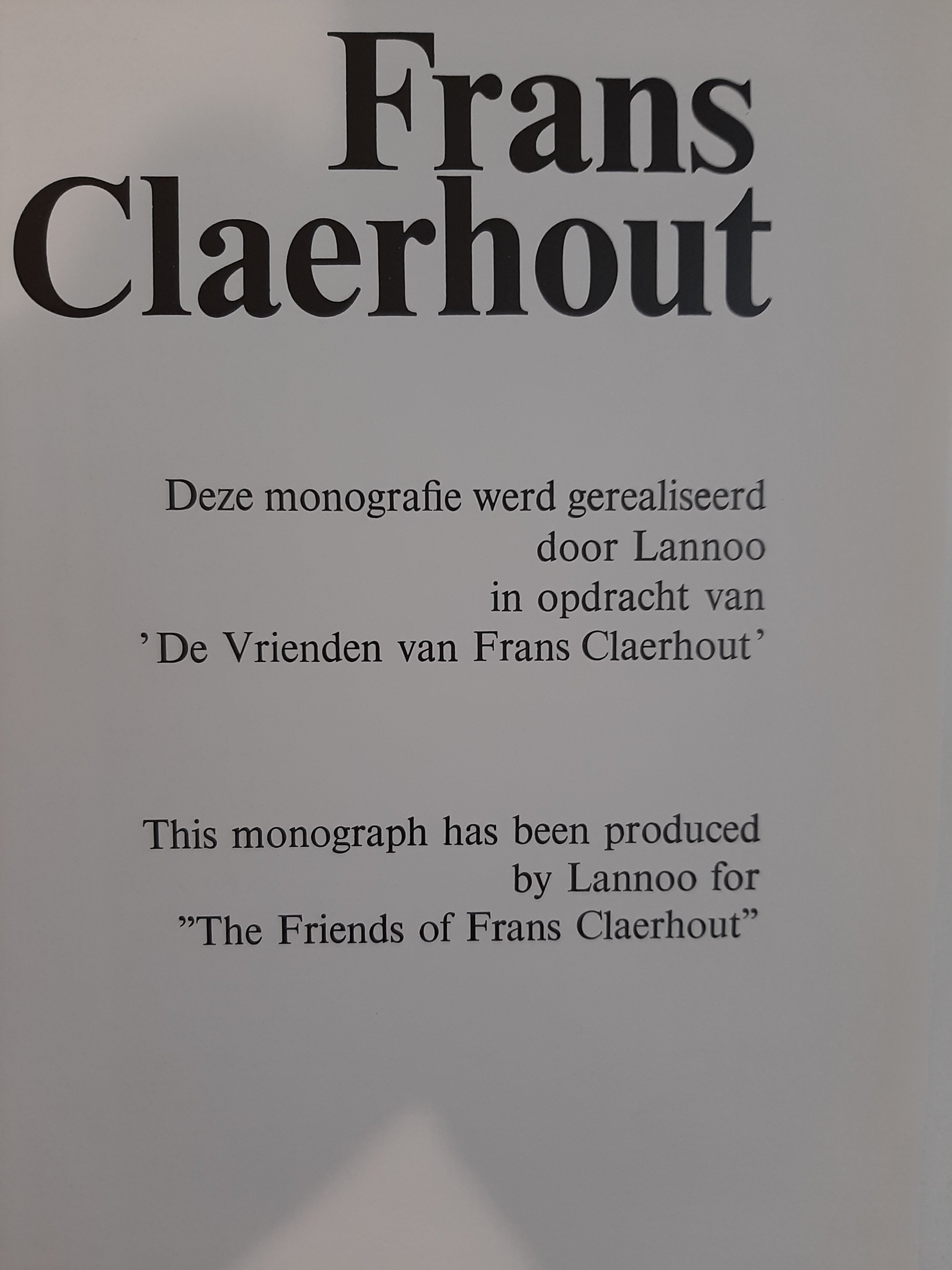 Used. BILINGUAL DUTCH-ENGLISH EDITION. Deze monografie werd gerealiseerd door Lannoo in opdracht van 'De Vrienden van Frans Claerhout' / This monograph has been produced by Lannoo for 'The Friends of Frans Claerhout'. 28x24cm. 142 page.