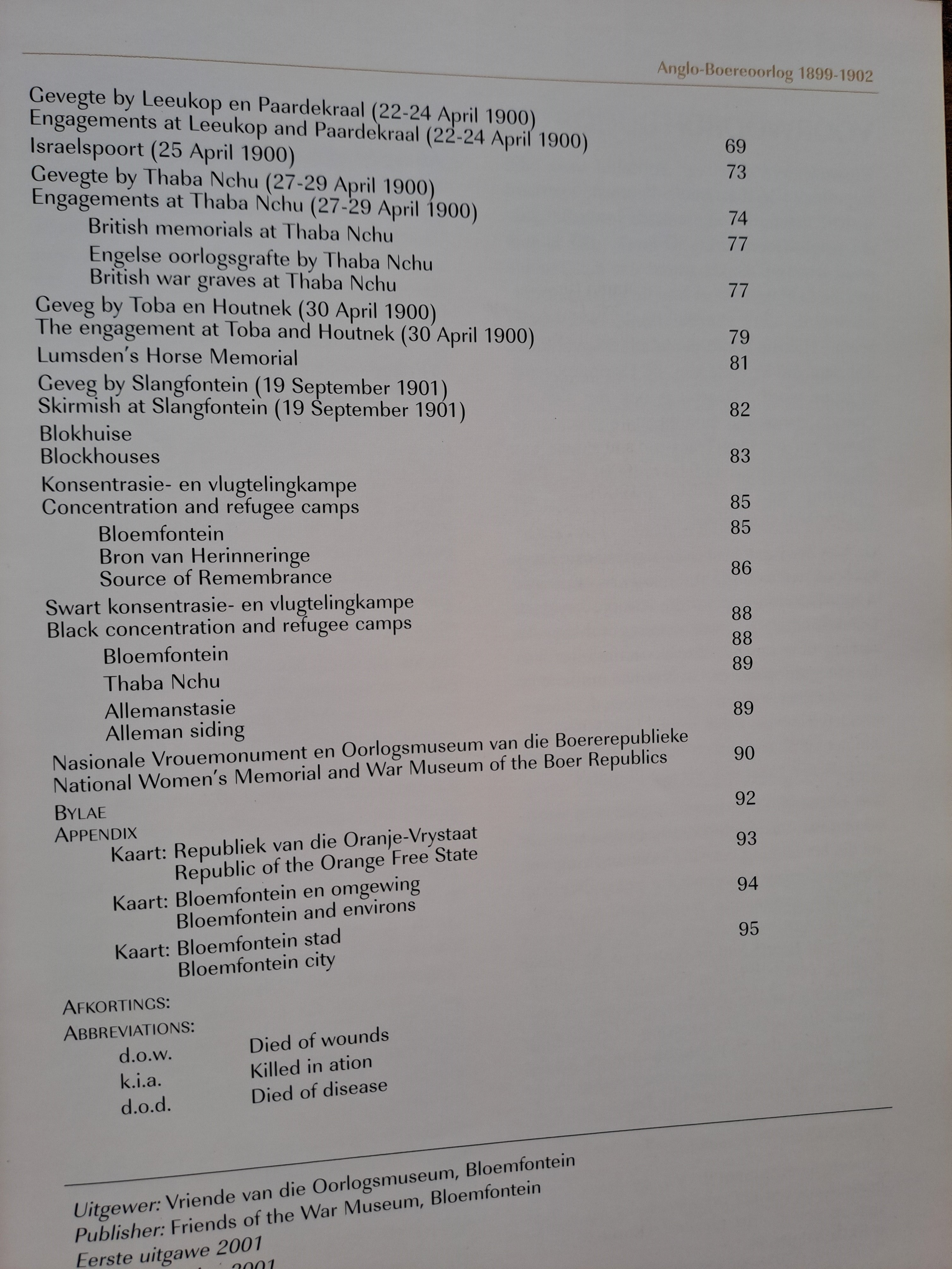 Slagvelde, Gedenktekens en Grafte van die Anglo-Boereoorlog in Bloemfontein en Omgewing/Battlefields, Monuments and Graves of the Anglo-Boer War in Bloemfontein and Vicinity - van der Bank, D.A.