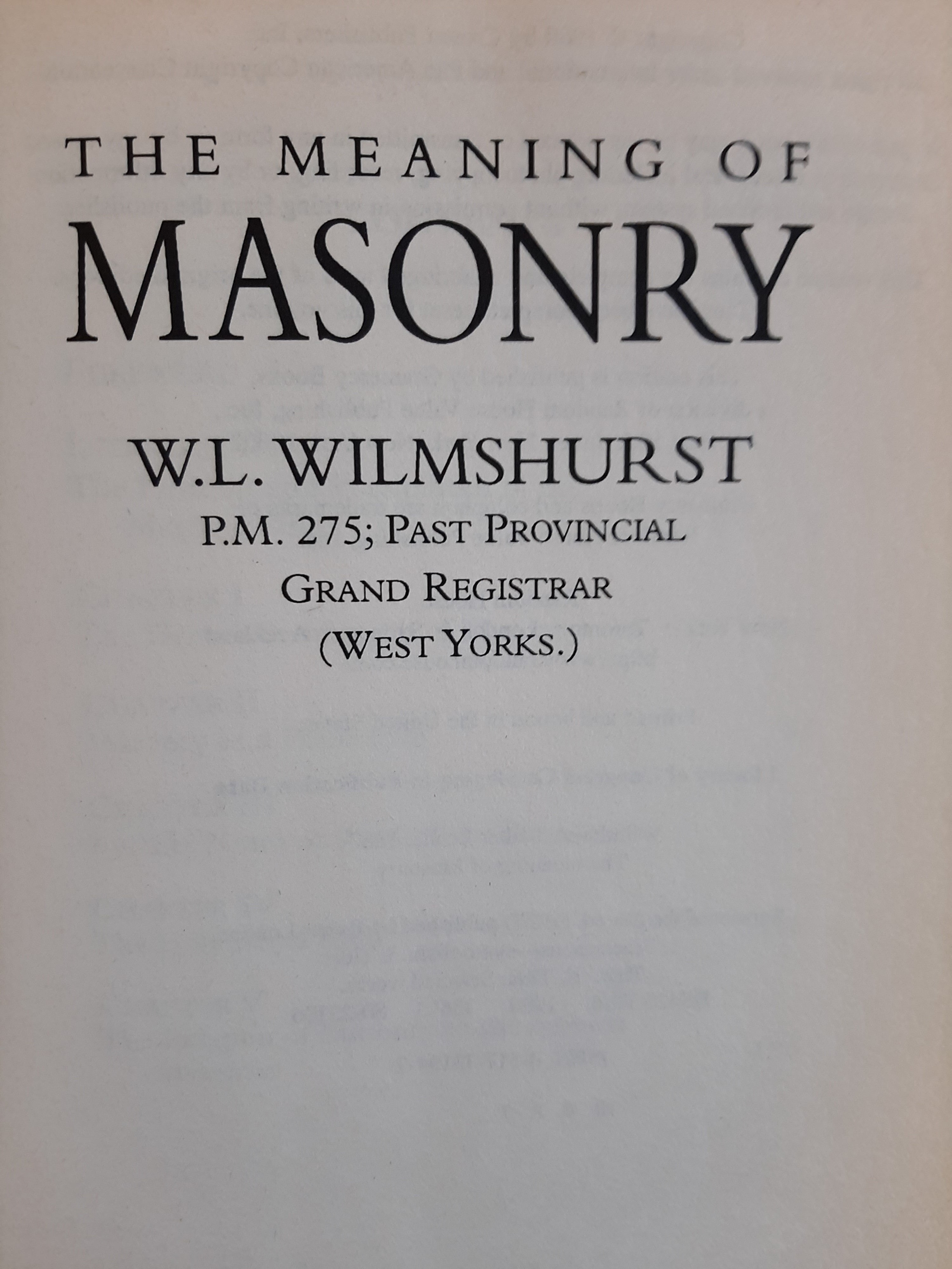 The Meaning of Masonry by W. L. Wilmshurst