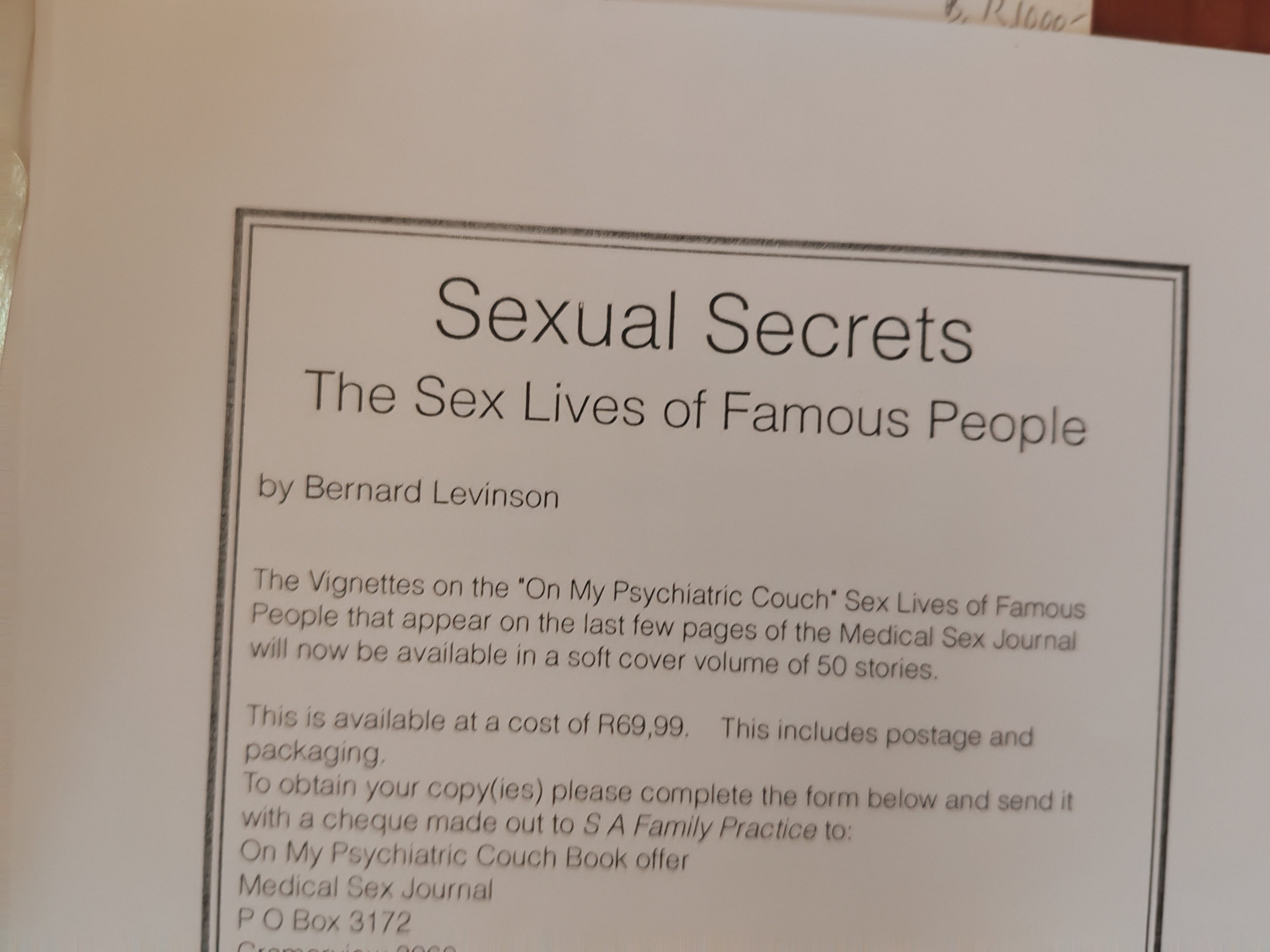 Dedicated, signed and dated by the Author and well known Sexologist, Dr Bernard Levinson.
