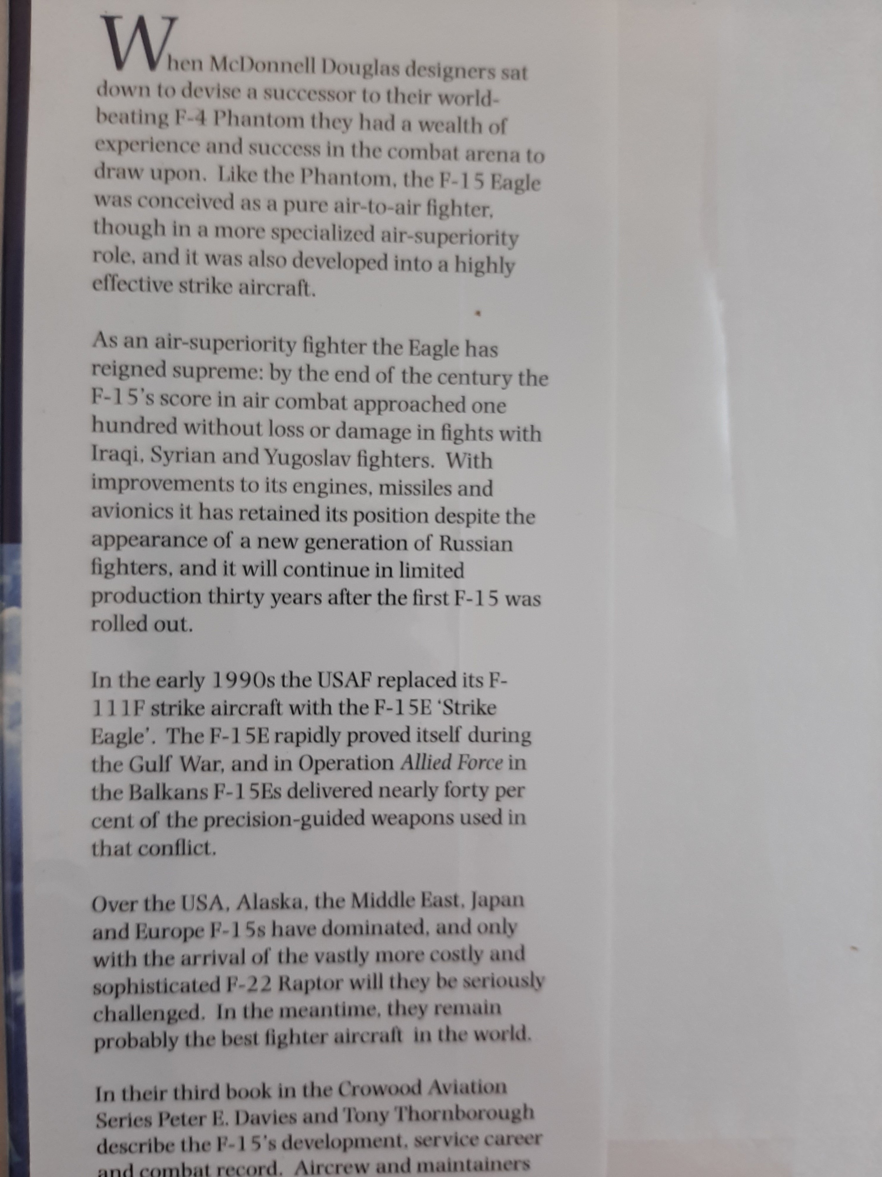 Since 1976, the McDonnell Douglas F-15 Eagle has been the United States military's principle air superiority fighter. This complete history of the design and development of the aircraft capable of Mach 2 is accompanied by stunning photography and the story of the F-15's service in the Gulf War.