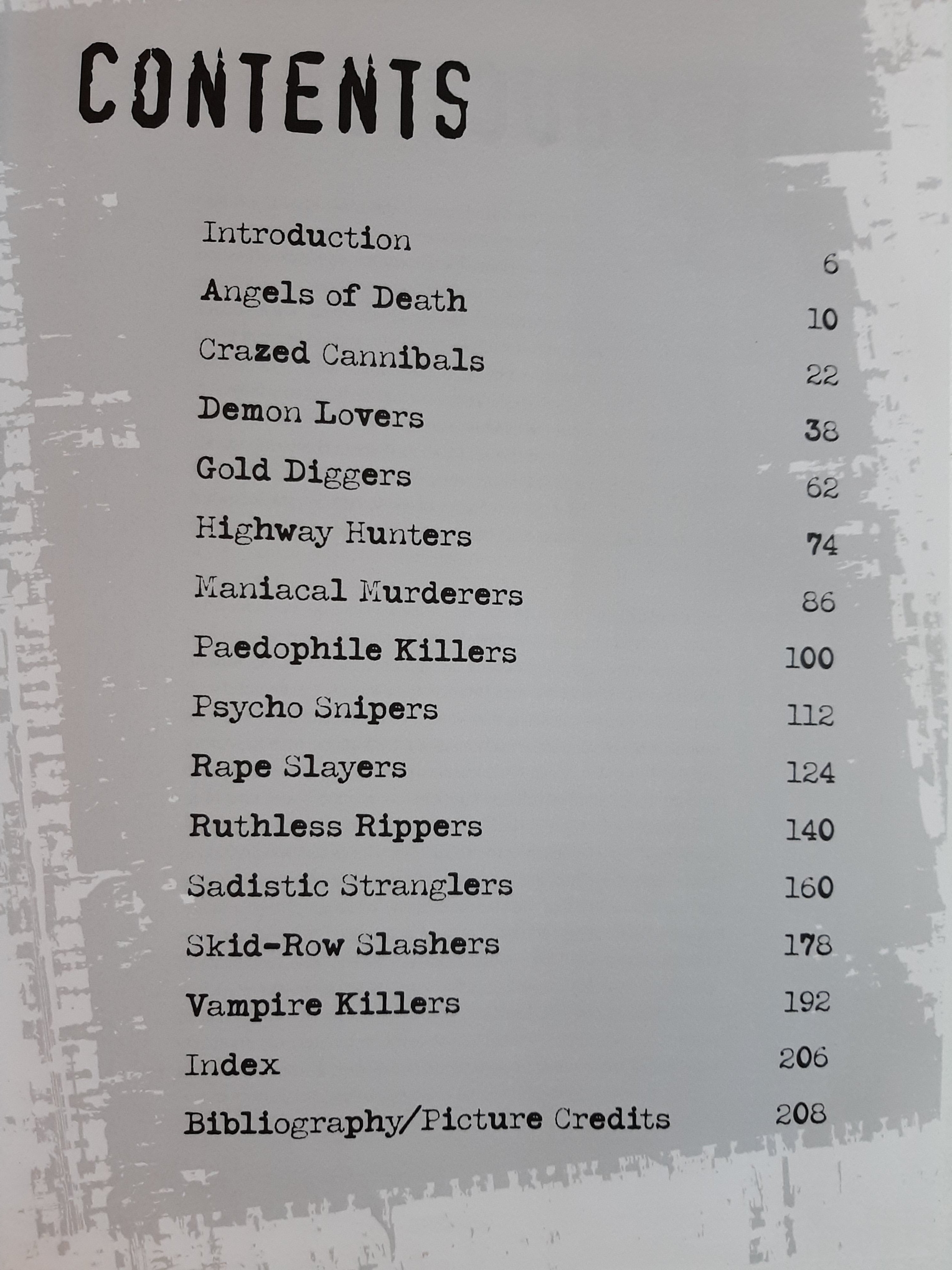This unique book is divided into sections, the openings of which set the scene for the reader with introductory tales of murders. The author then moves on to focus on specific killers who have become the major celebrity in their particular field of murder and mutilation. Unfortunately, this is an area that needs updating constantly. This book includes the most up-to-date crimes of the serial killer world, including the infamous crimes of Harold Shipman, the Washington DC Sniper Killers and Armin Meiwes, the German cannibal.