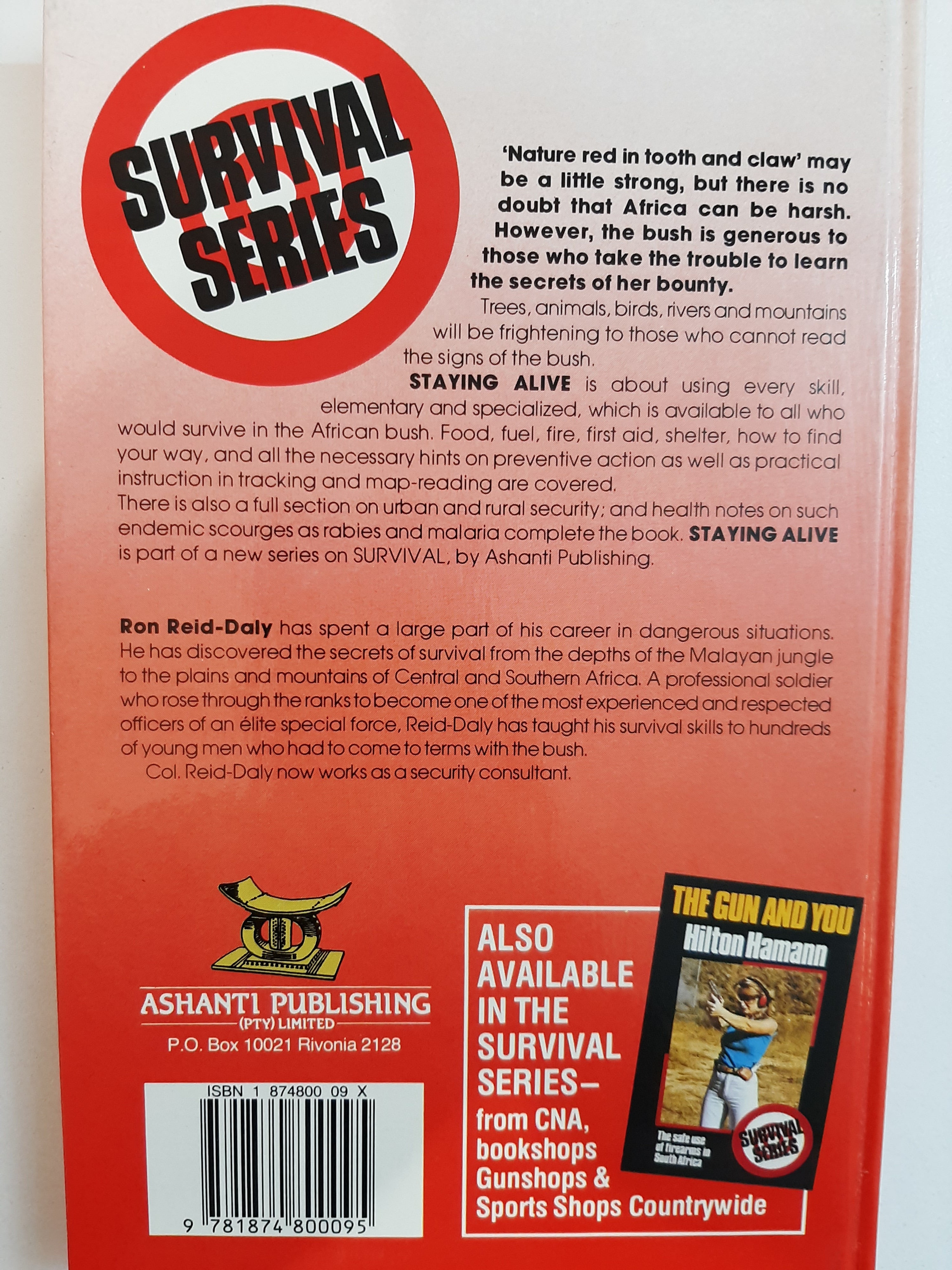 Staying Alive is about using every skill, elementary and specialized which is available to all who would survive in the African bush. Food, fuel, fire, first aid, shelter, how to find your way and all the necessary hints on preventive action as well as practical instruction in tracking and map reading are covered. There is also a full section on urban and rural security and health notes on such endemic scourges as rabies and malaria complete the book.