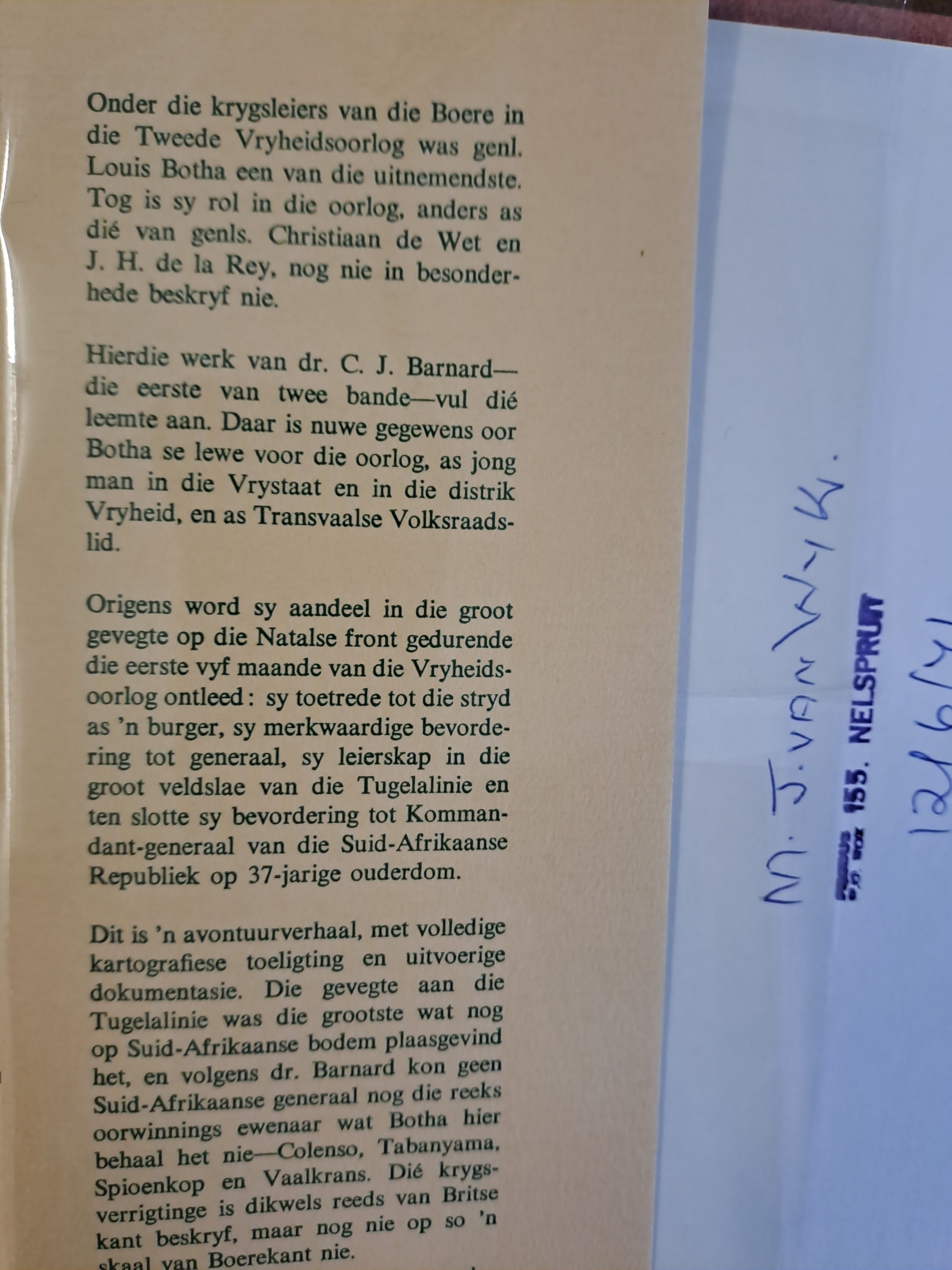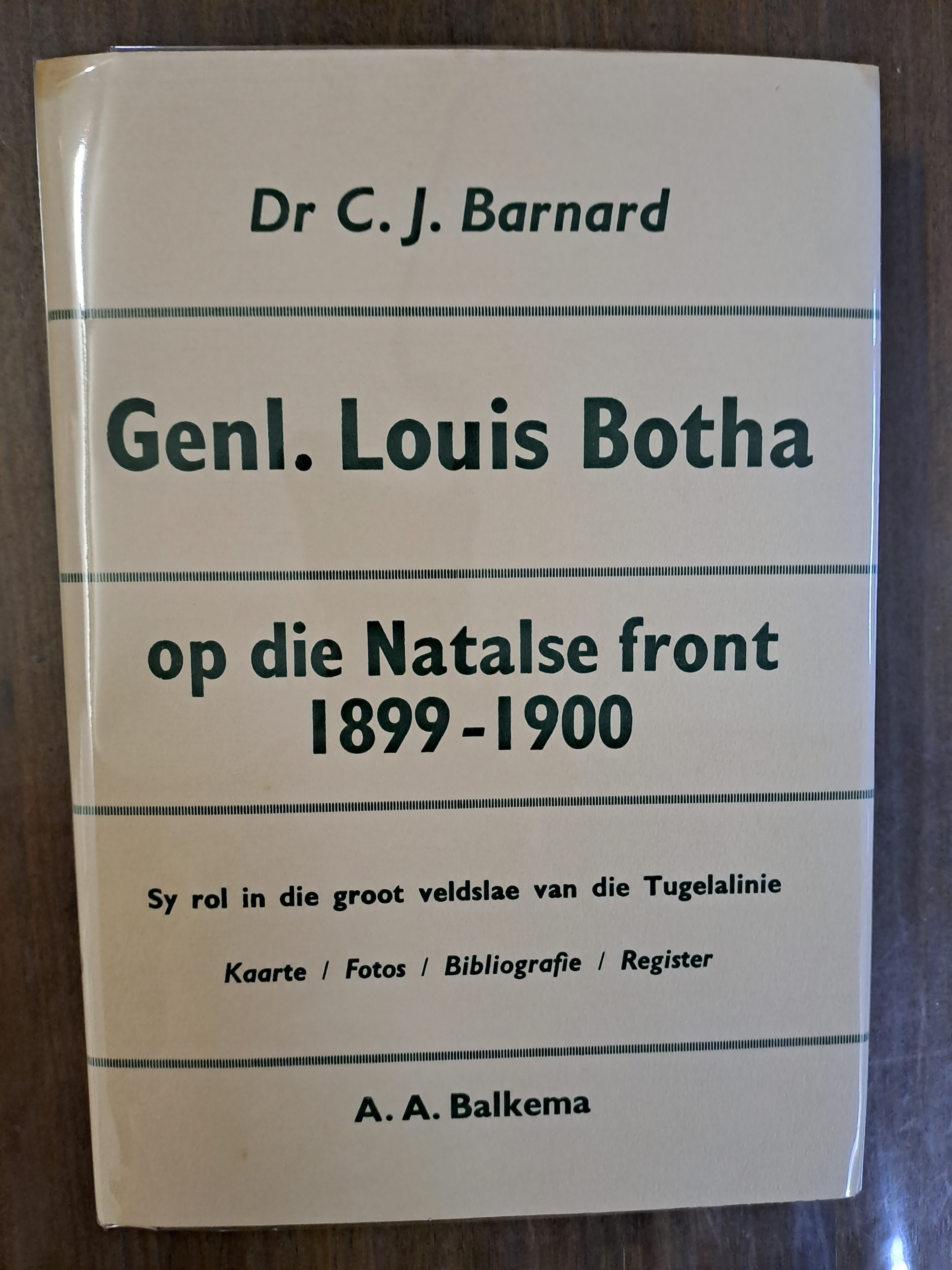 Generaal Louis Botha Op Die Natalse Front 1894-1900: Sy Rol in Die Groot Veldslae Van Die Tugela linie Kaarte/ Fotos / Bibliografie / Register by C.J Barnard. (Afrikaans edition)
