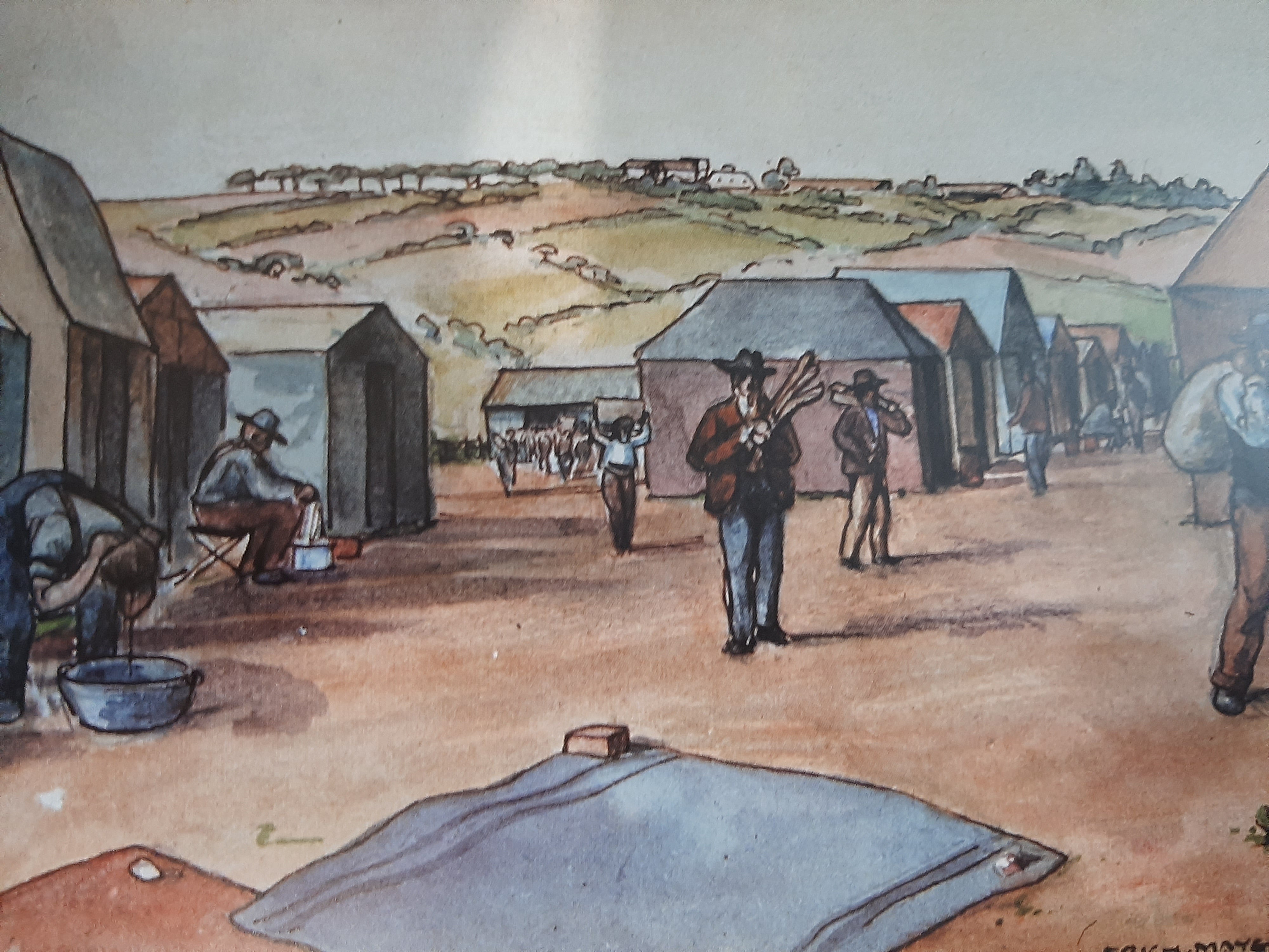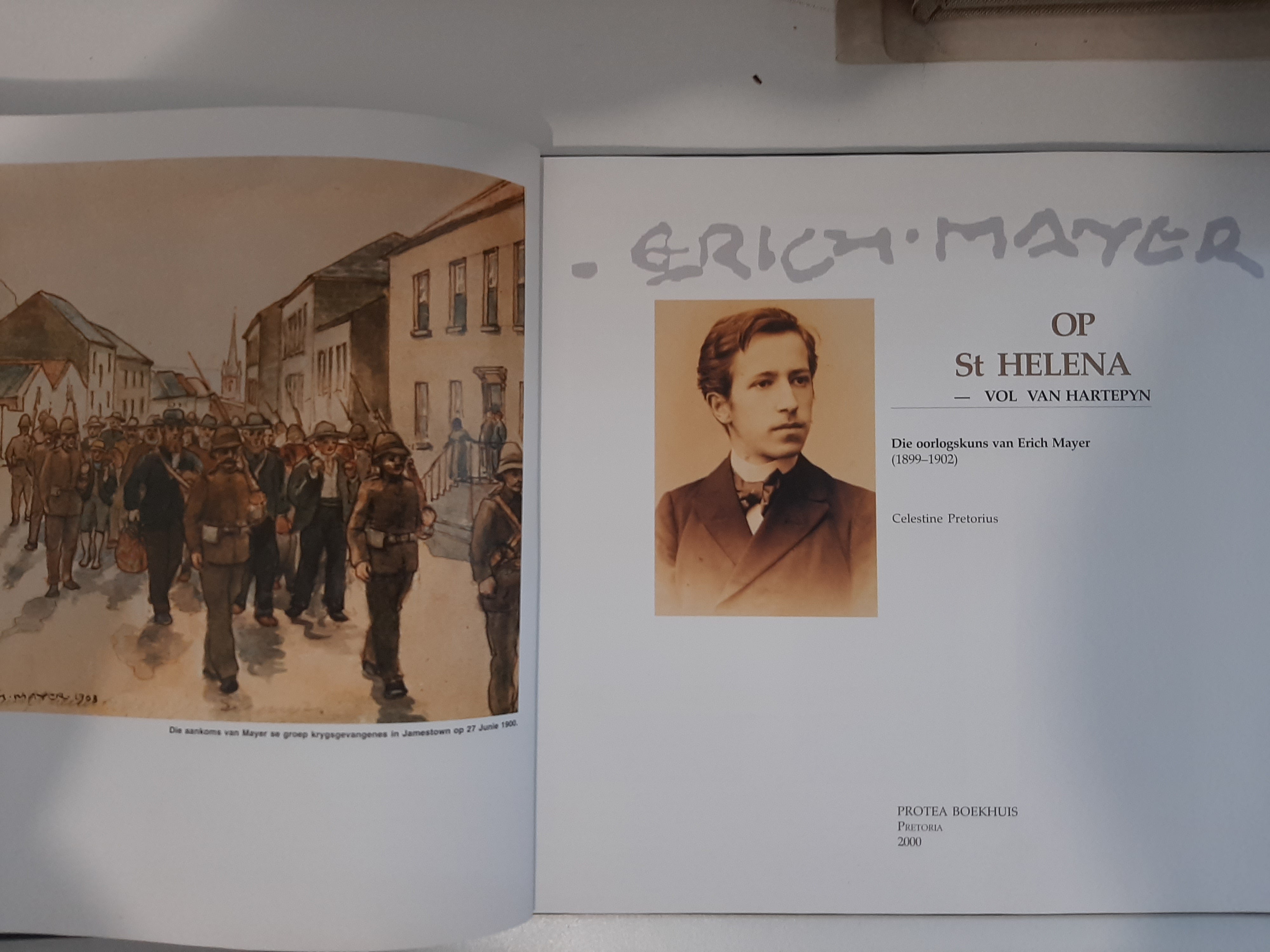 In Afrikaans. Illustrated hardback binding. Color illustrations. German/South African artist's Boer War art ; Afrikaans Edition; Oblong 8vo; 83 pages.