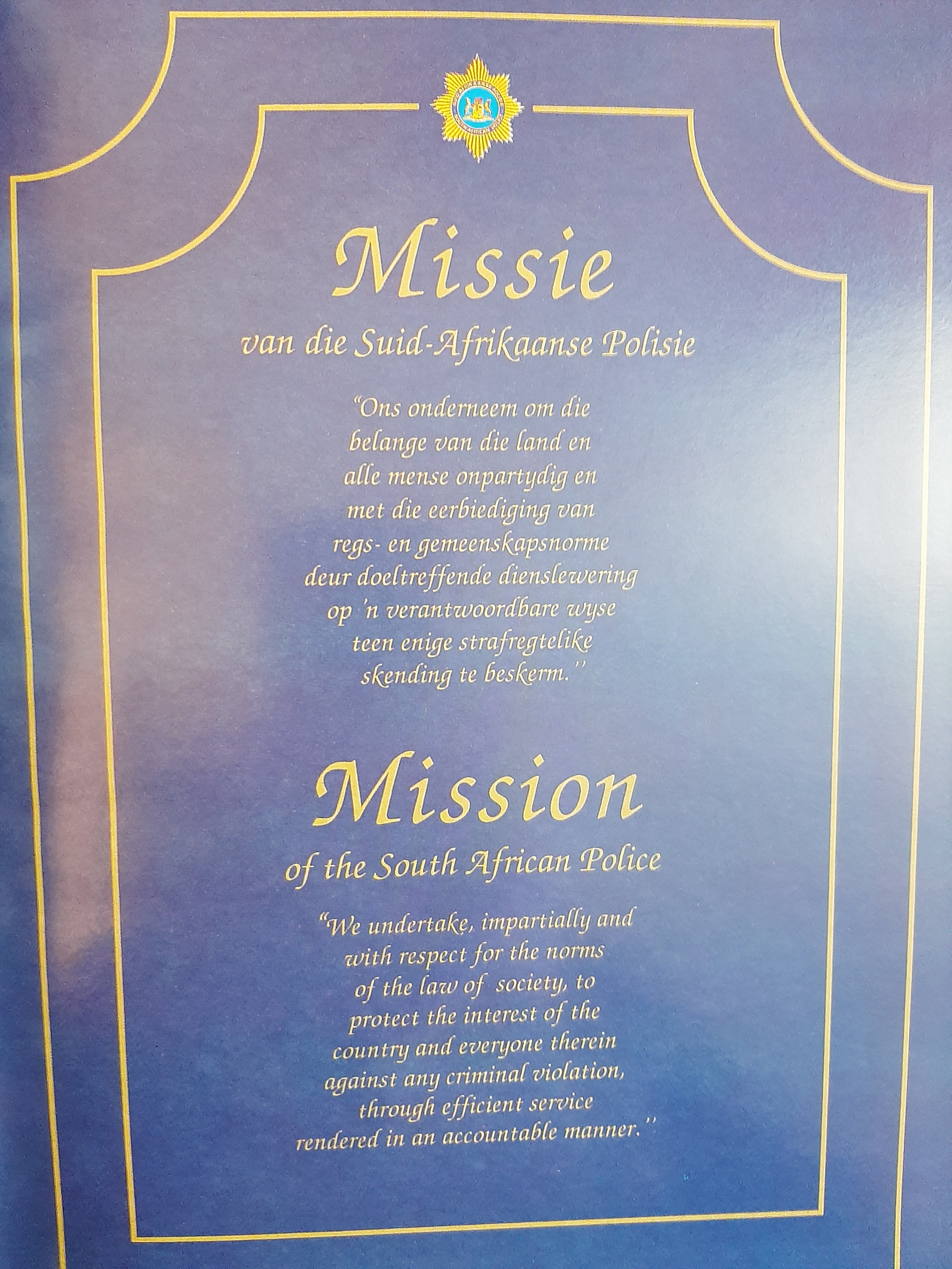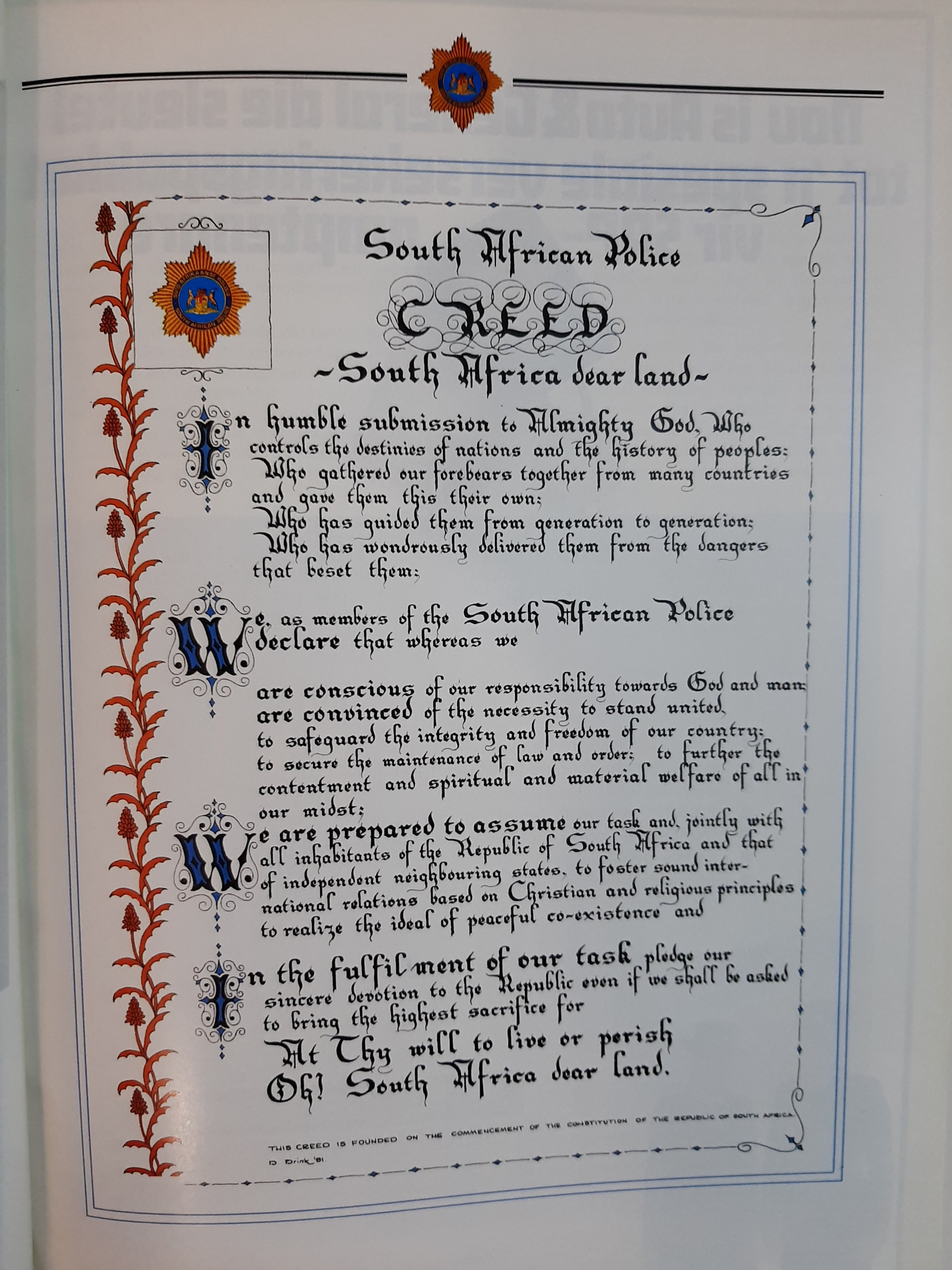Printed on behalf of the South African Police by Walker-Ramus Trading Company