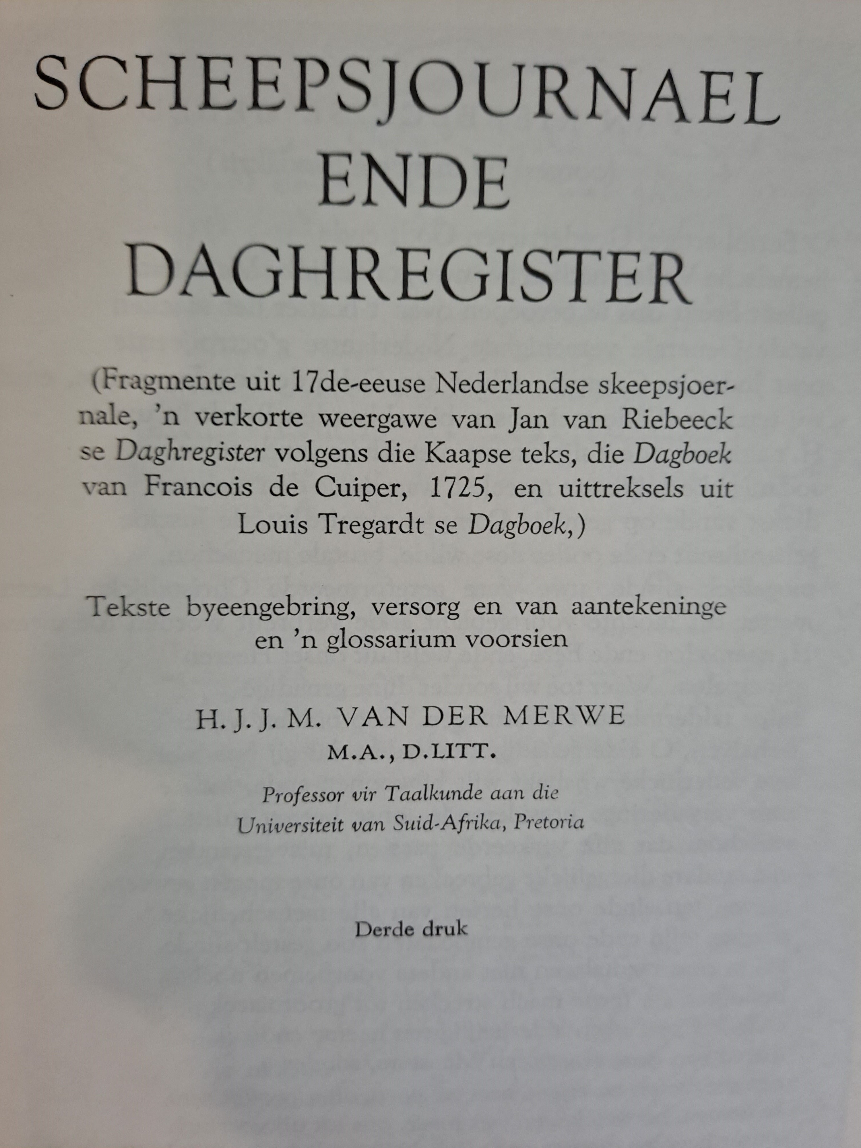 Fragmente uit 17de eeuse Nederlandse skeepsjoernale, ‘n verkorte weegawe van Jan van Riebeeck se Daghregister volgens die Kaapse teks, die Dagboek van Francois de Cuiper, 1825 en uittreksels uit Louis Tregardt se Dagboek.