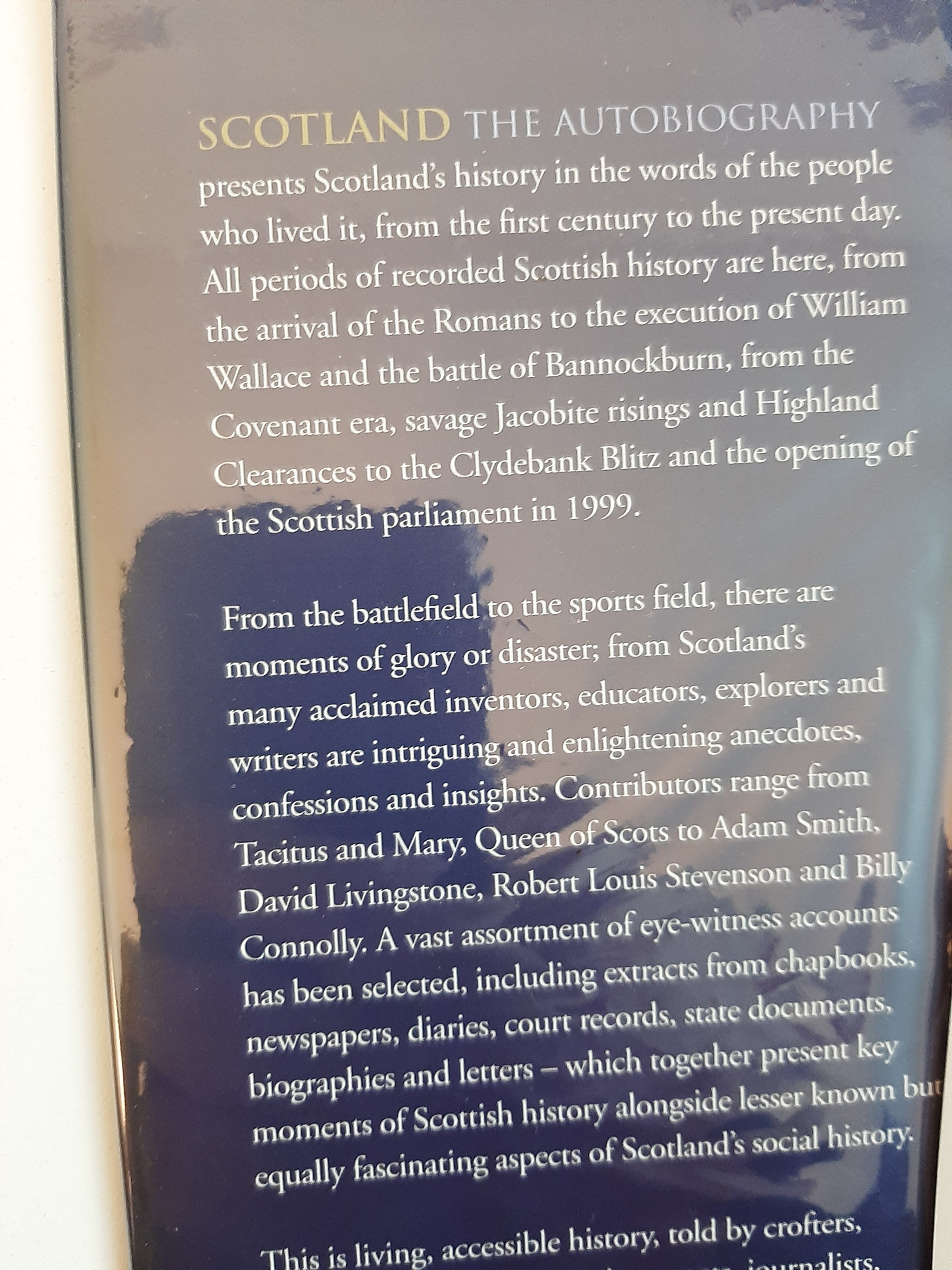 This is a vivid, wide-ranging and engrossing account of Scotland's history, composed of eye-witness accounts by those who experienced it first-hand. Contributors range from Tacitus, Mary Queen of Scots and Oliver Cromwell to Adam Smith, David Livingstone and Billy Connolly. These include not just key historic moments - from Bannockburn to the opening of the new parliament in 1999, but testimonies like that of the eight-year-old factory worker who was dangled by his ear out of a third-floor window for making a mistake; the survivors of Culloden, who wished perhaps that they had died on the field; the breakthrough moment for John Logie Baird, inventor of television; and, the genesis of great works of literature recorded by Conan Doyle, Stevenson and the editor of "Encyclopaedia Britannica".From the battlefield to the sports field, we have moments of glory or disaster, along with wonderfully readable insights into the everyday life of Scotland through the millennia.