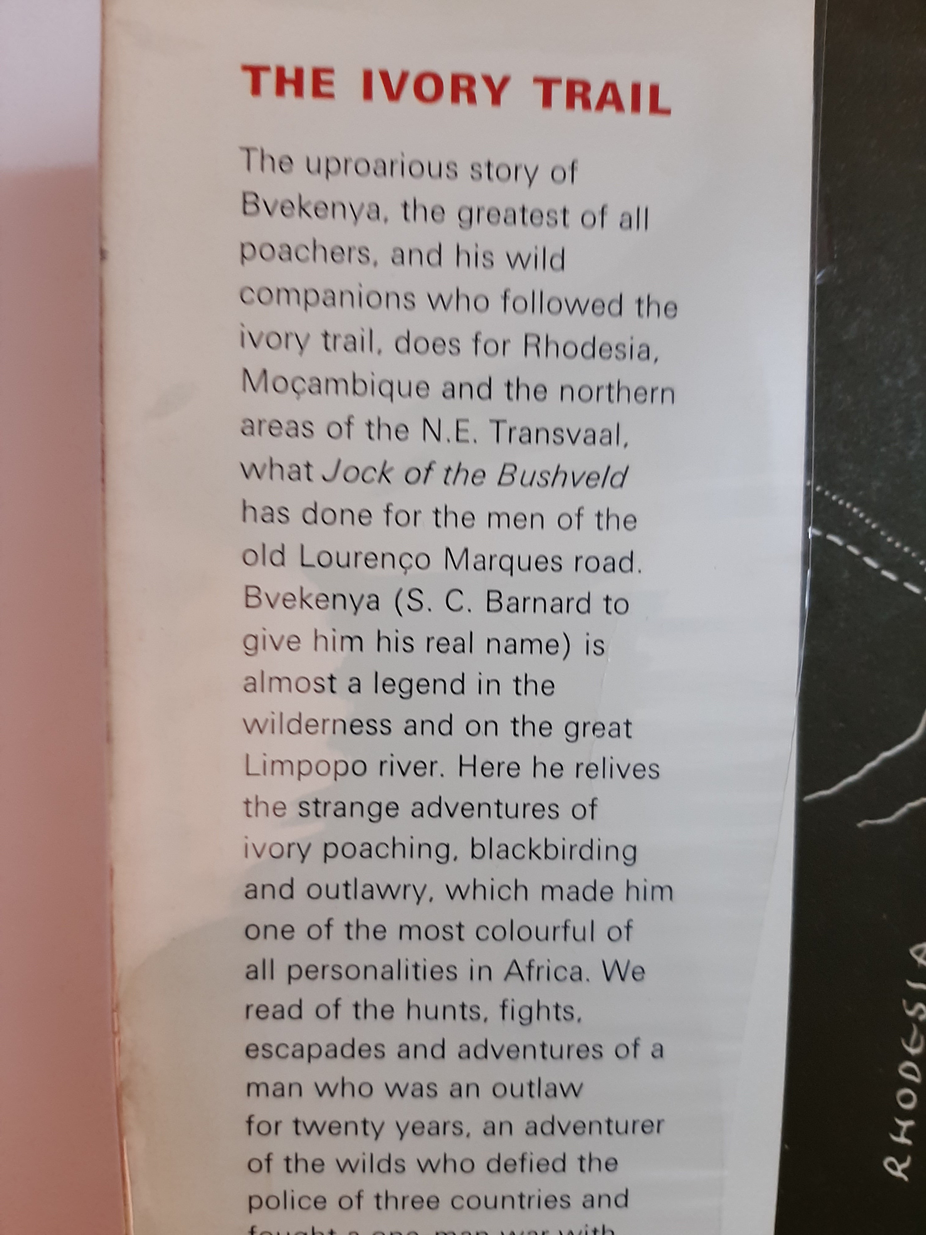 A story of a larger than life hunter and poacher told by one of South Africa's most popular travel and adventure writers. This is the story of legendary hunter/poacher S.C. 'Bvekenya' Barnard who lived in the Limpopo River region. It tells of his hunting expeditions that revolved around Crook's Corner, where he could take refuge from the country's police. An outlaw for twenty years, Bvekenya was one of the most colorful personalities in Africa, who fought a one-man war against all control and authority. The life of Bvekenya and his exploits as an ivory poacher, blackbirder, outdoorsman and perhaps surprisingly for some, a conservationist, was told to Bulpin by Barnard himself.