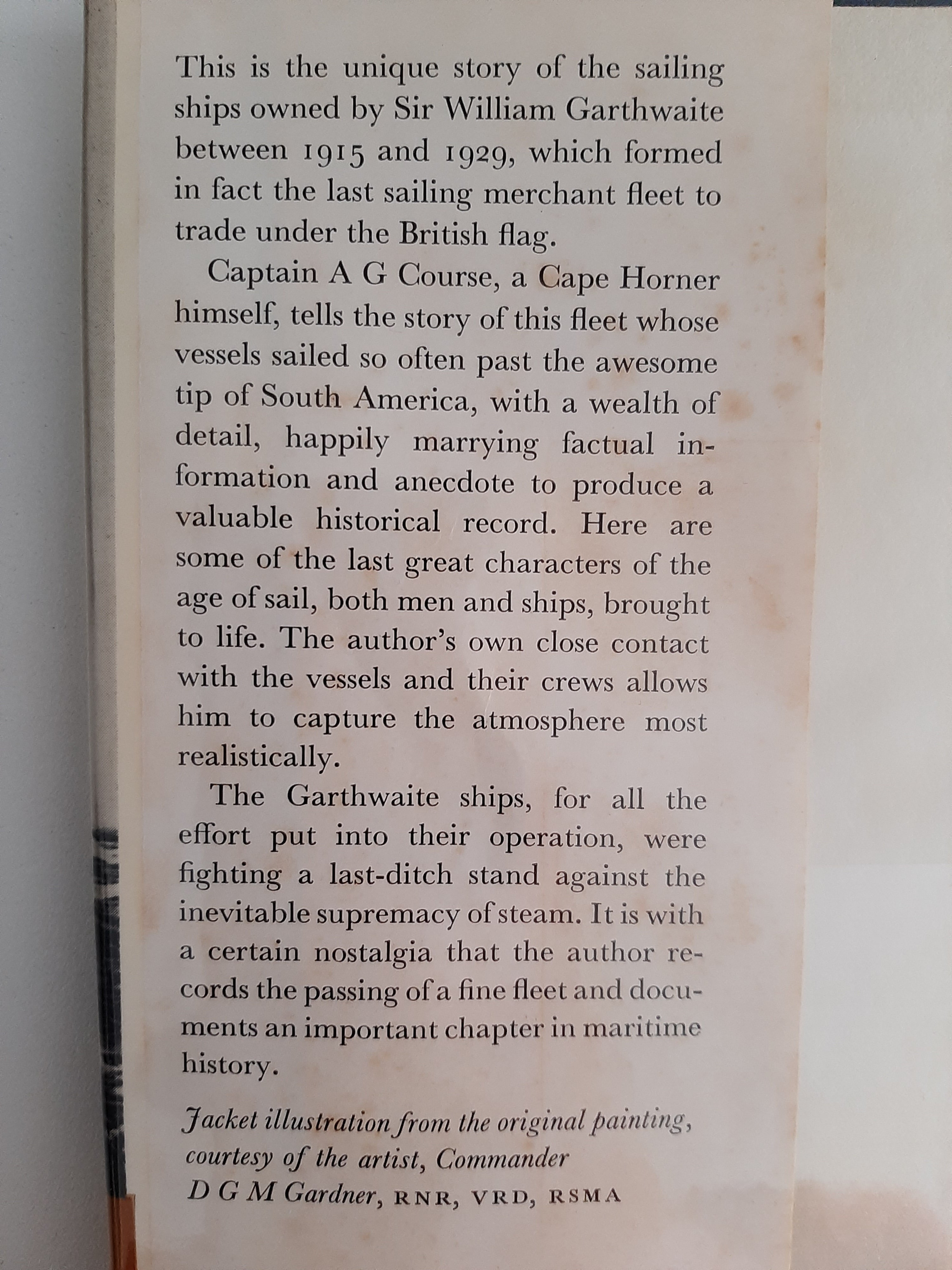 This is the unique story of the sailing ships owned by Sir William Garthwaite between 1915 and 1929 which formed in fact the last sailing merchant fleet to trade under the British flag.
